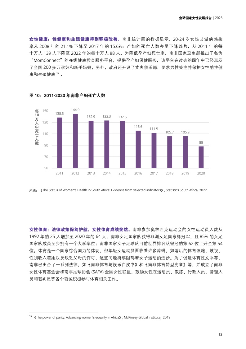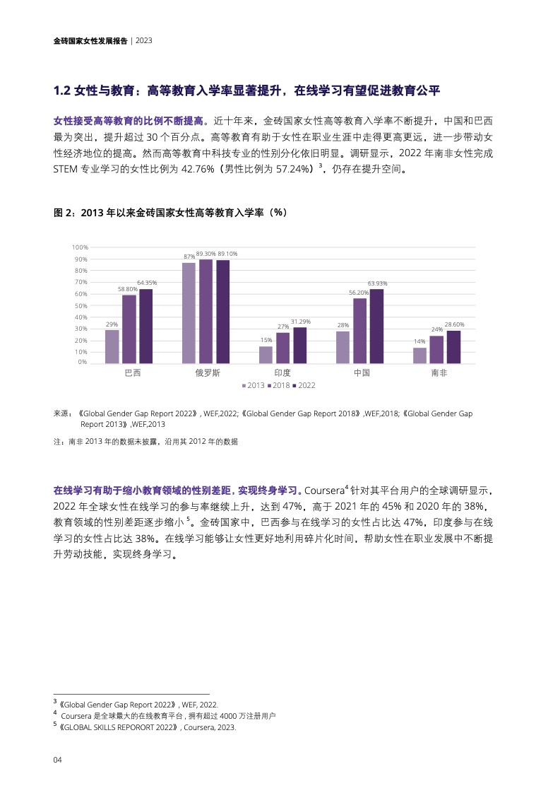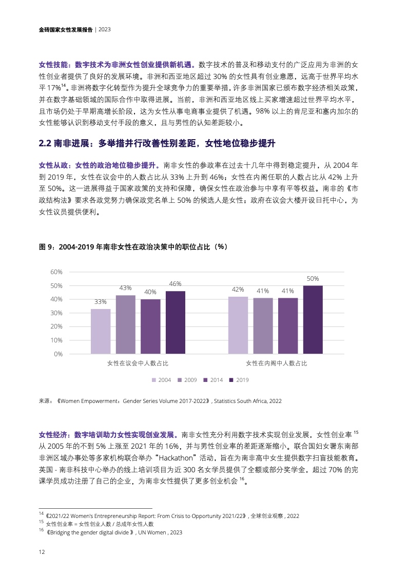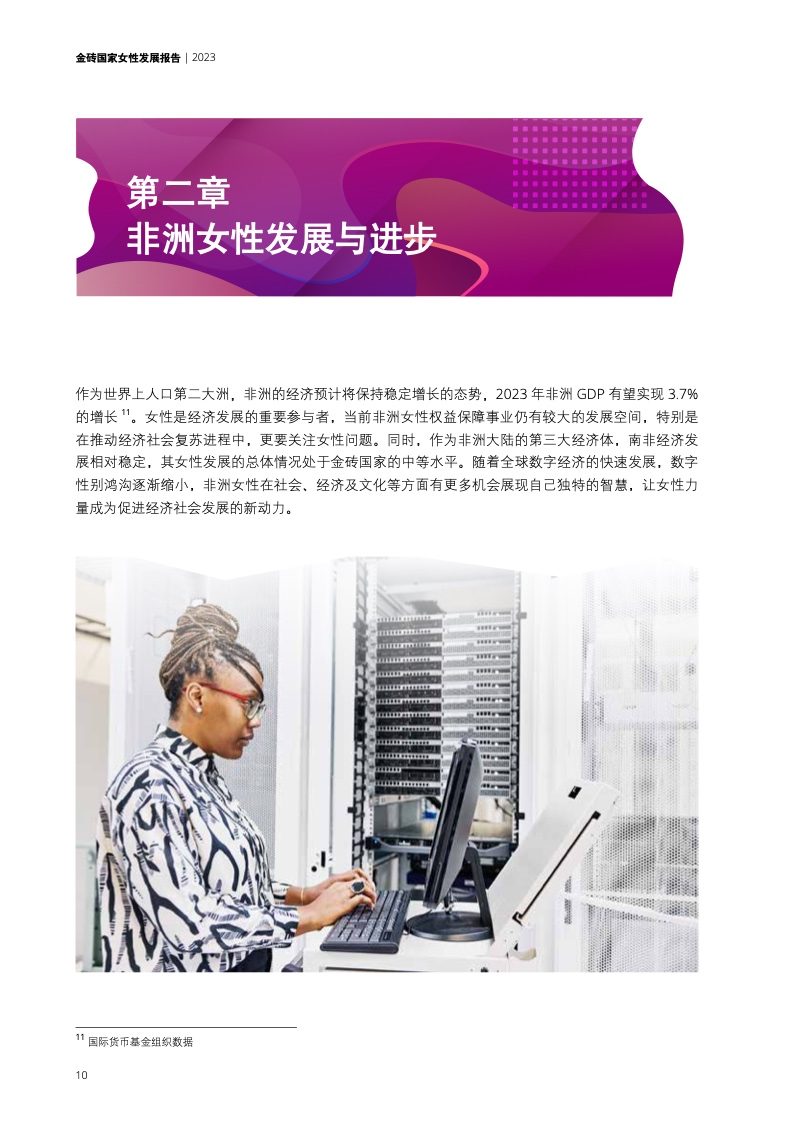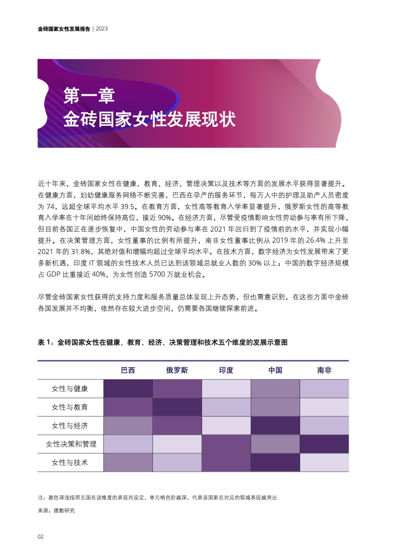 《报告》显示,近十年来,金砖国家女性地位显著提升,在健康、教育、经济、决策管理以及技术方面获得长足进步。