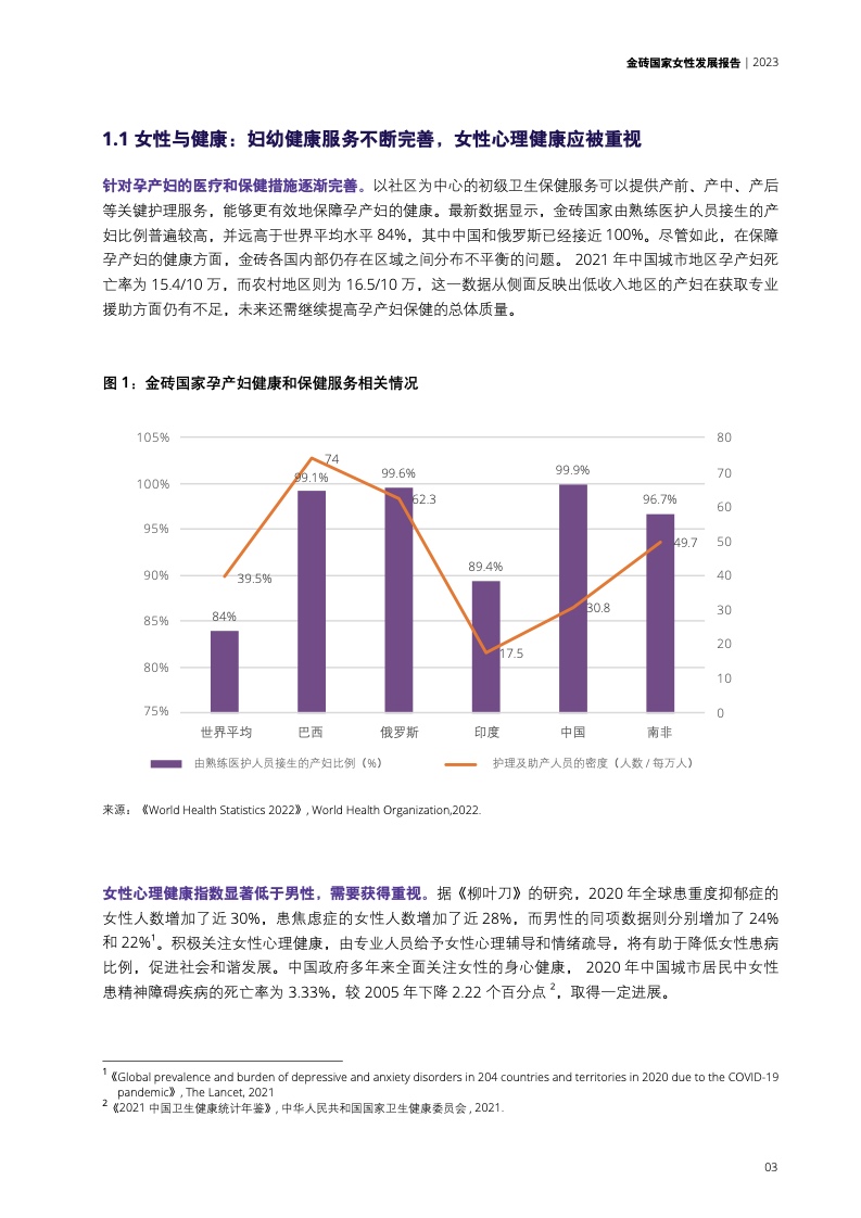 《报告》显示,在健康方面,金砖国家妇幼健康服务网络不断完善,巴西在孕产的服务环节,每万人中的护理及助产人员密度为74,远超全球平均水平39.5。