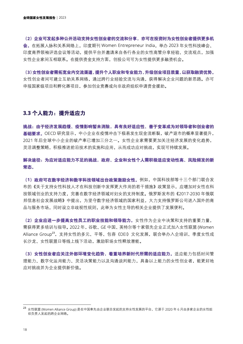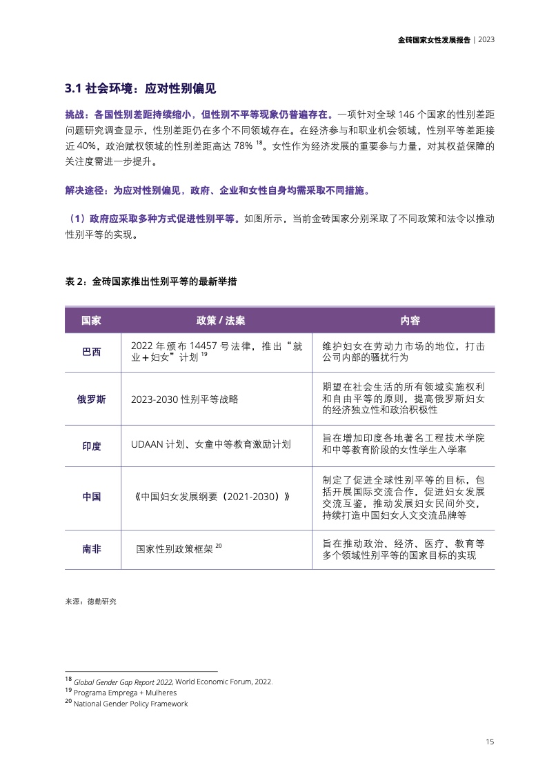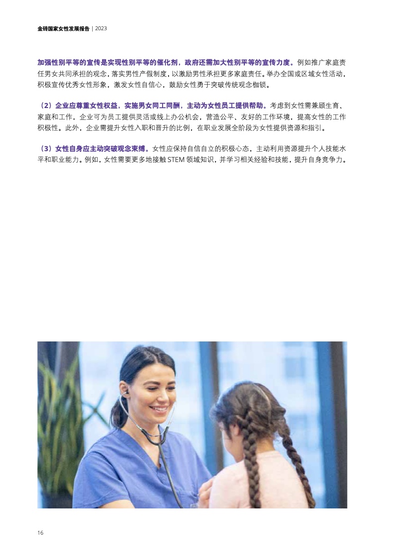 《报告》指出,女性地位的提升得益于金砖各国稳定的经济发展和对女性发展持续的关注和扶持。金砖国家以占全球26%的土地和42%的人口数量,在全球经济、贸易、可持续发展等领域发挥重要作用。随着女性主题在金砖国家的关注度上升,女性参与对社会进步的贡献愈发凸显,女性在职场上的独特优势逐渐被认可和发掘。