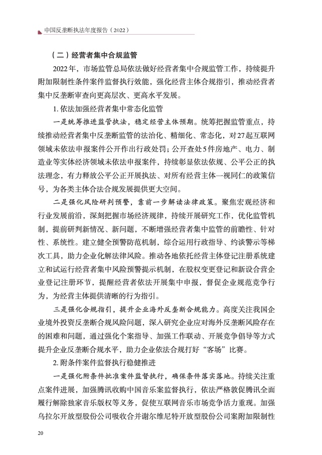 2等附加限制性条件案件监督执行,密切关注高科技、知识产权等领域竞争 状况,依法深入核查科技创新领域案件线索,保护创新动力。