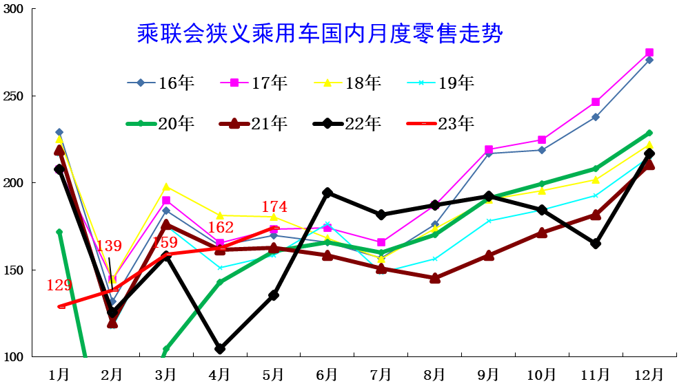 2023年5月乘用车市场零售达到174.1万辆,同比增长29%,环比增长7%。今年以来累计零售763万辆,同比增长4%。