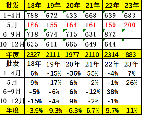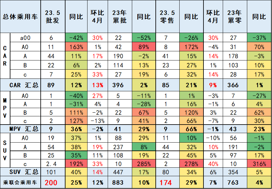 从今年春节过早、预期刺激政策出台反复未果、国六老库存促销战风起云涌、期待中的老国六车延期半年和去年基数较低等综合因素的影响下,1-5月累计零售763万辆,同比增长4%。