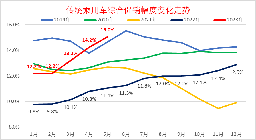 传统燃油车的促销在2023年2月收缩后,3-5月又开始大幅反弹,目前达到近期最高位水平。