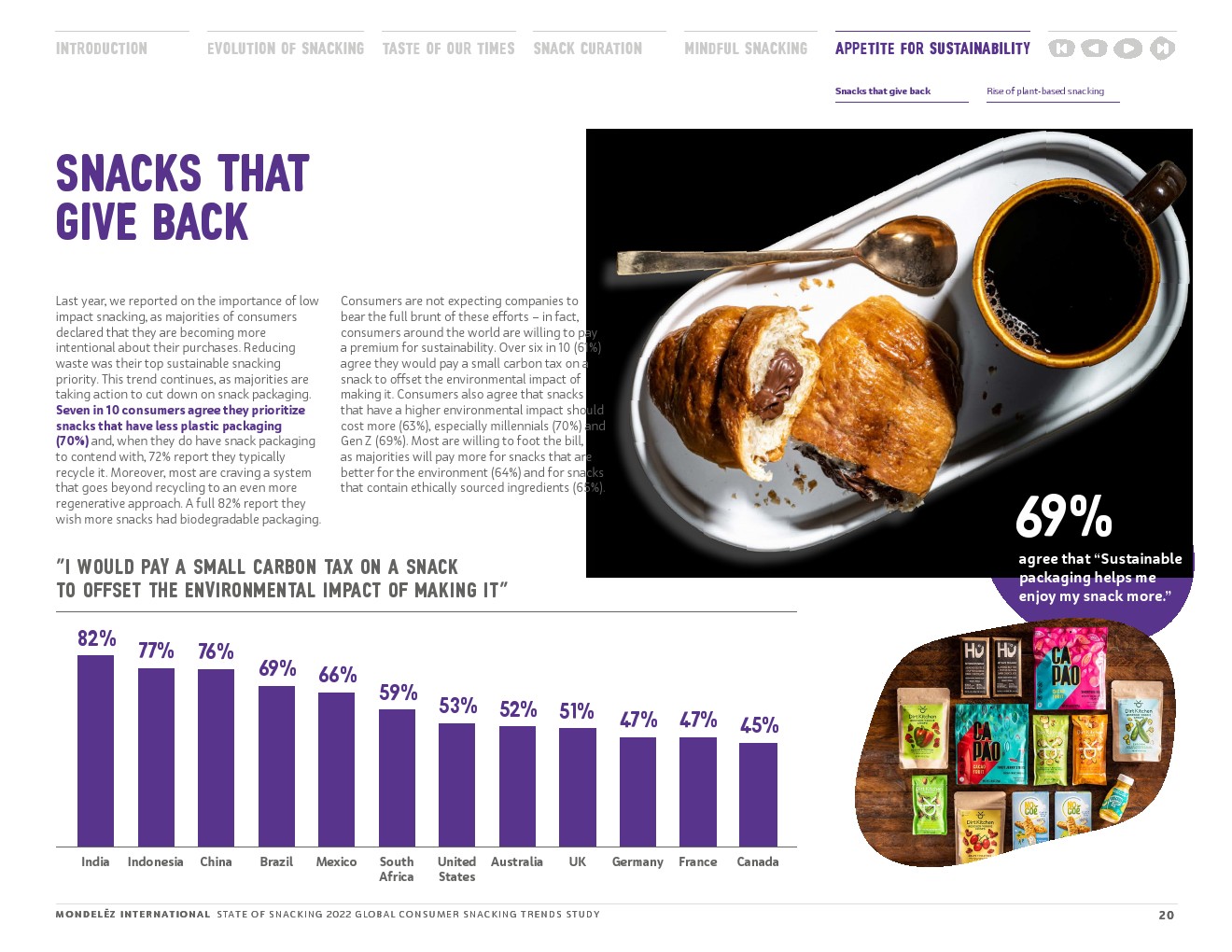 7/10的消费者认为他们优先考虑塑料包装较少的零食,72%的消费者通常会回收零食包装。