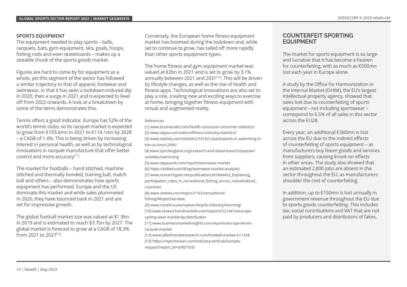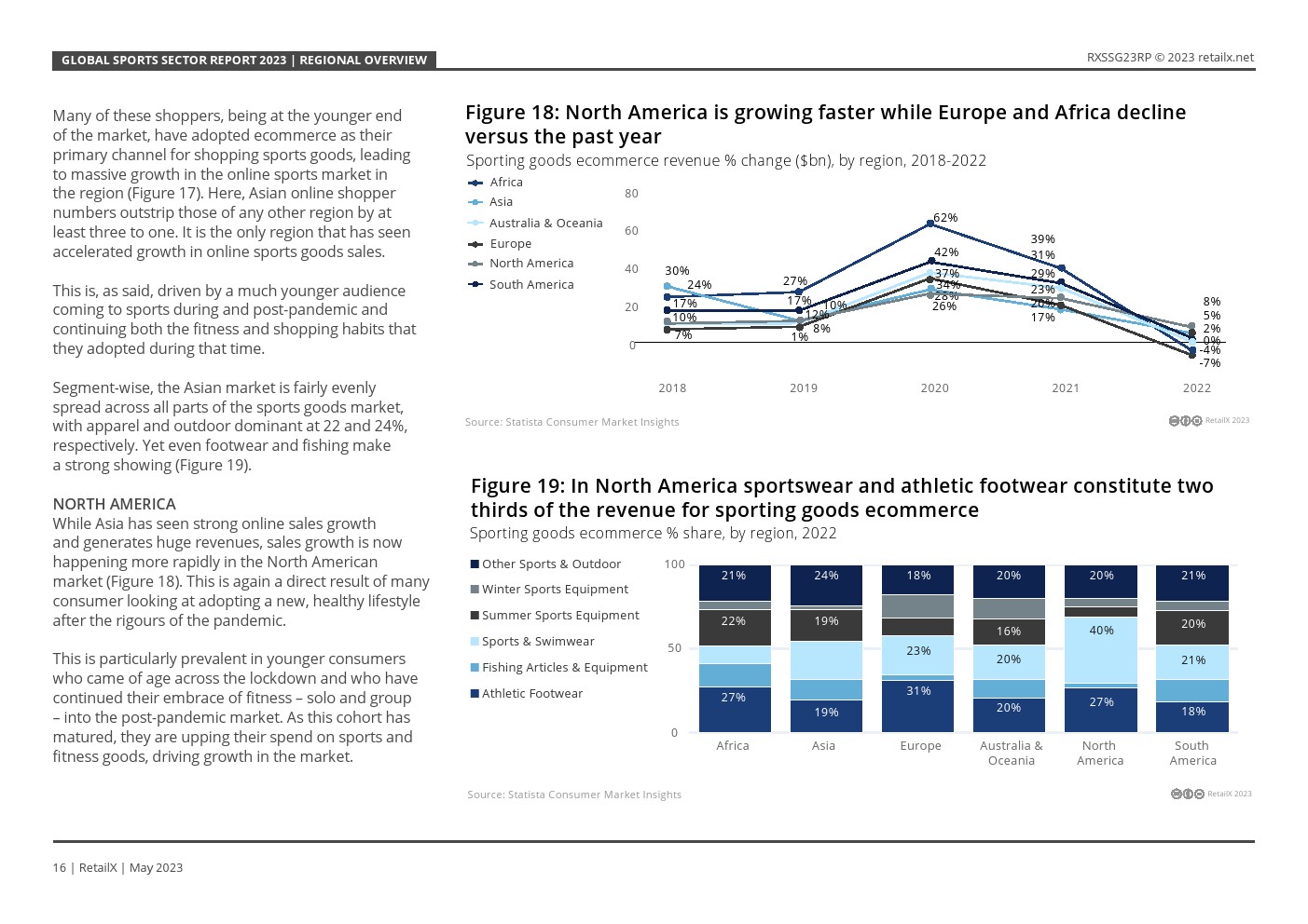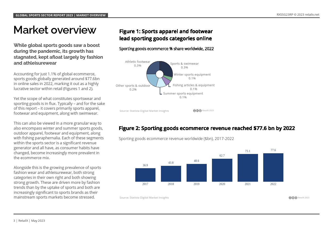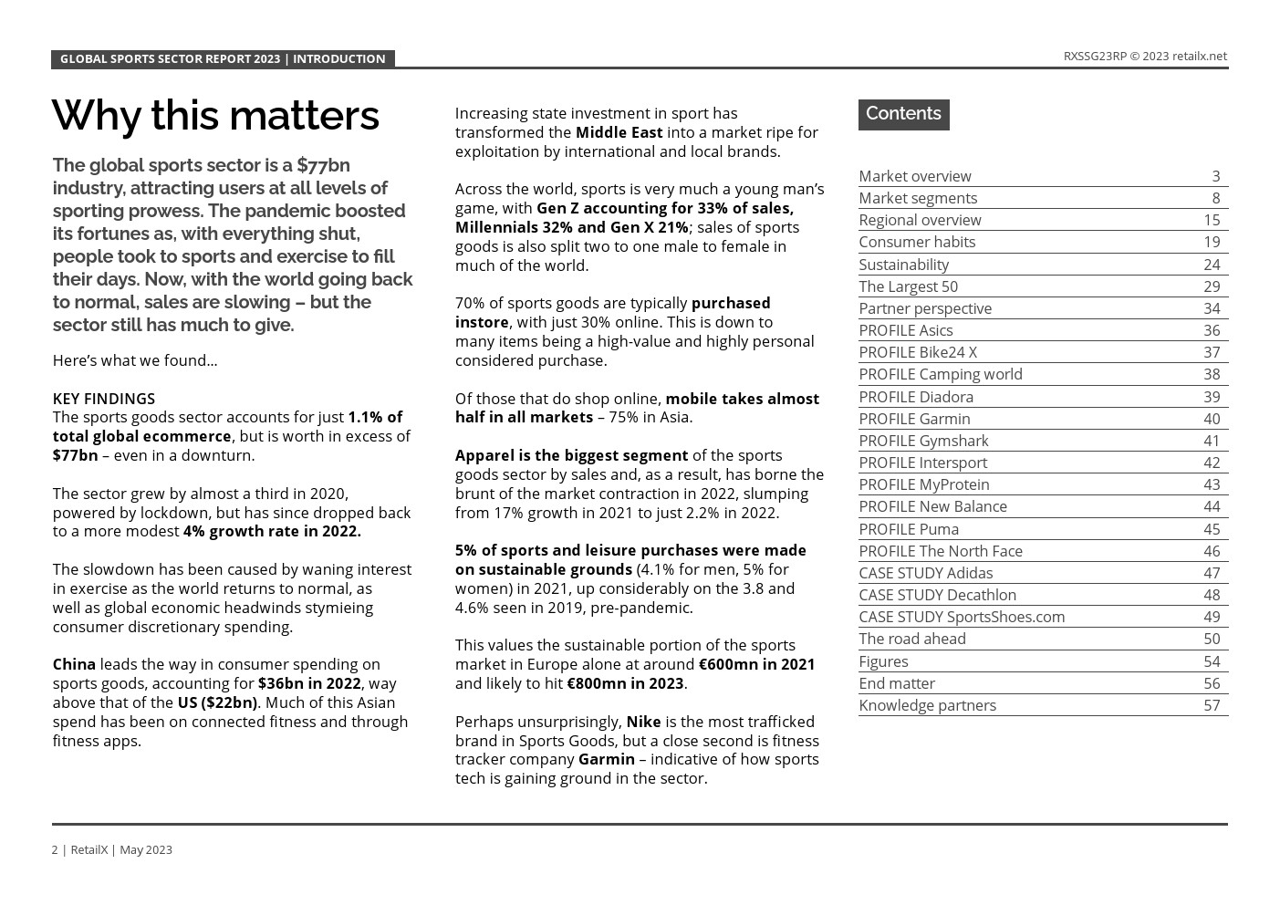 Retailx发布了“2023年全球体育产业报告”。体育行业是一个价值770亿美元的行业,吸引着各种水平的用户。大流行增加了它的财富,因为在一切都关闭的情况下,人们开始运动和锻炼来充实他们的日子。如今,随着世界经济恢复正常,销售正在放缓,但该行业仍有很多机遇。