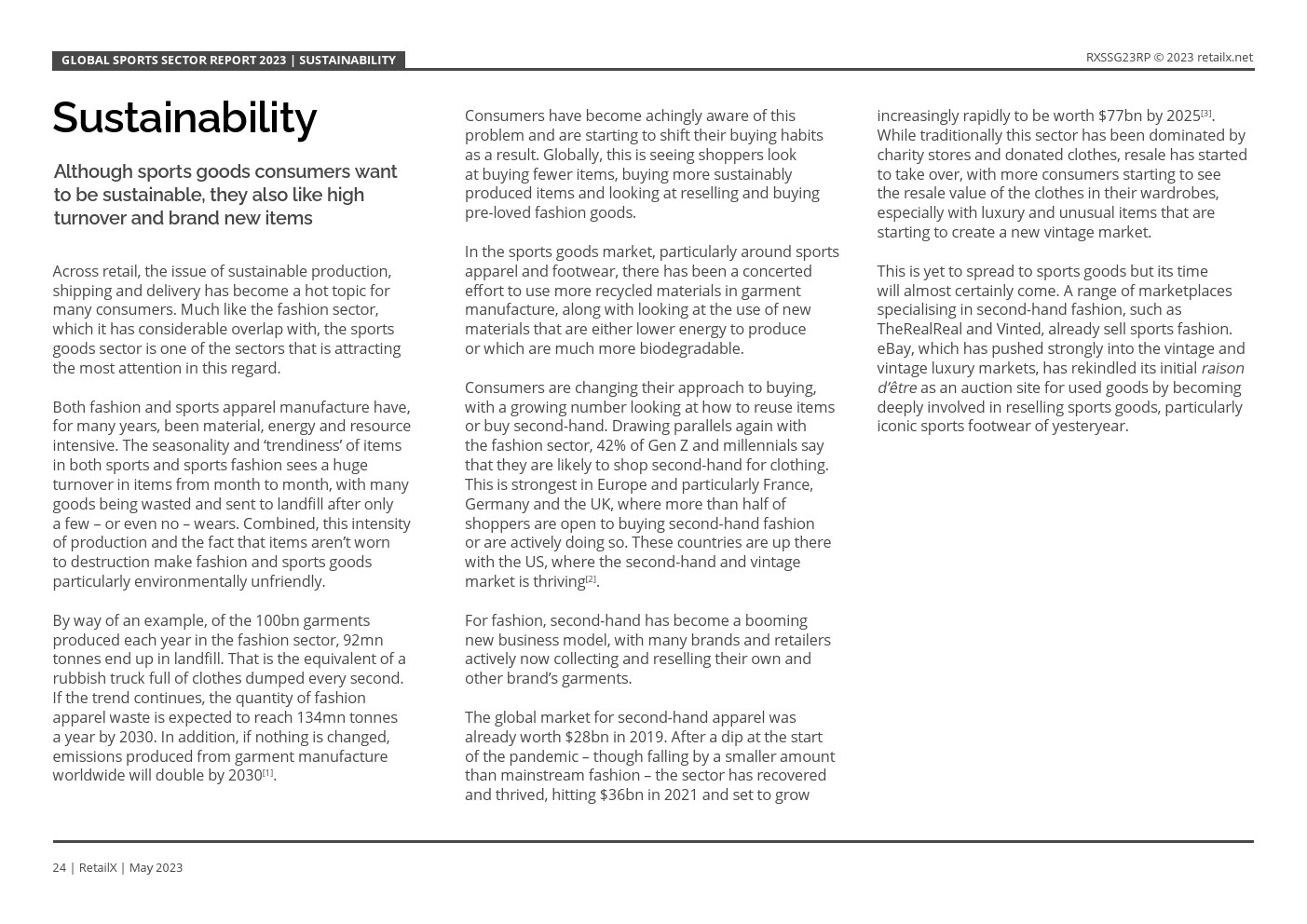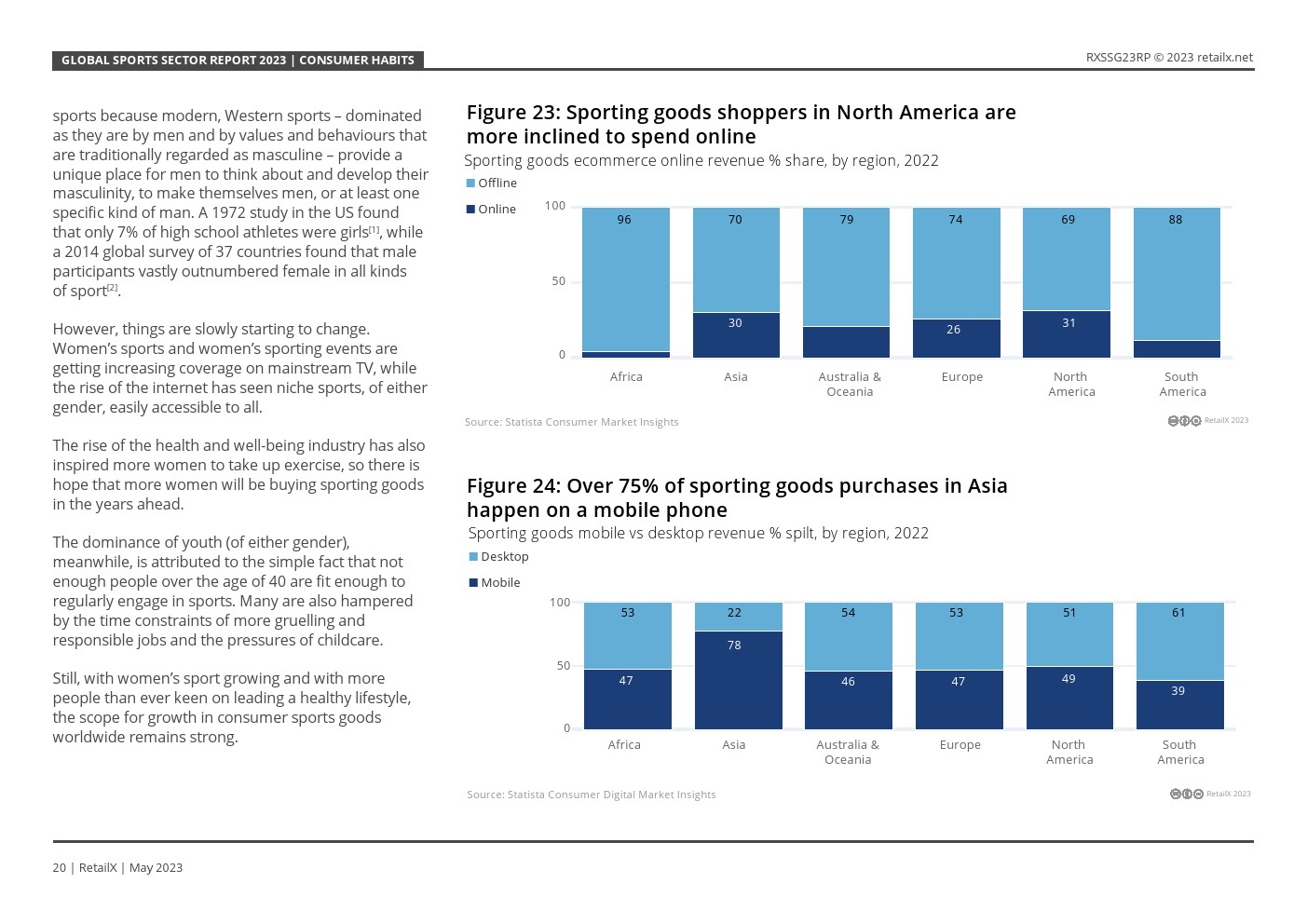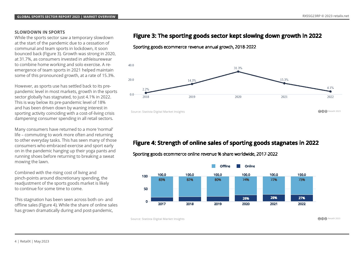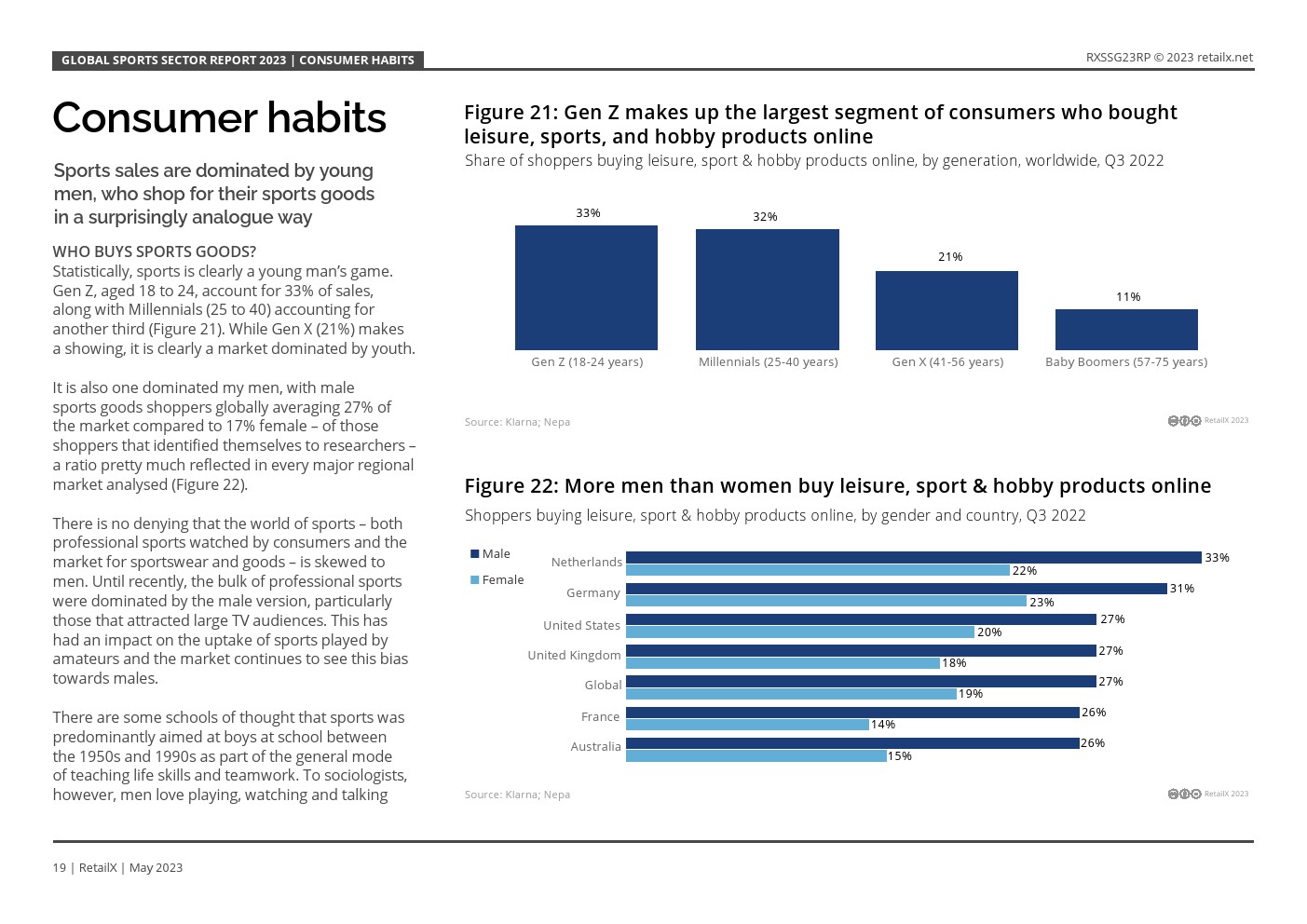 Retailx发布了“2023年全球体育产业报告”。体育行业是一个价值770亿美元的行业,吸引着各种水平的用户。大流行增加了它的财富,因为在一切都关闭的情况下,人们开始运动和锻炼来充实他们的日子。如今,随着世界经济恢复正常,销售正在放缓,但该行业仍有很多机遇。