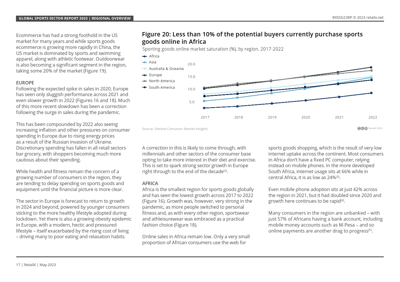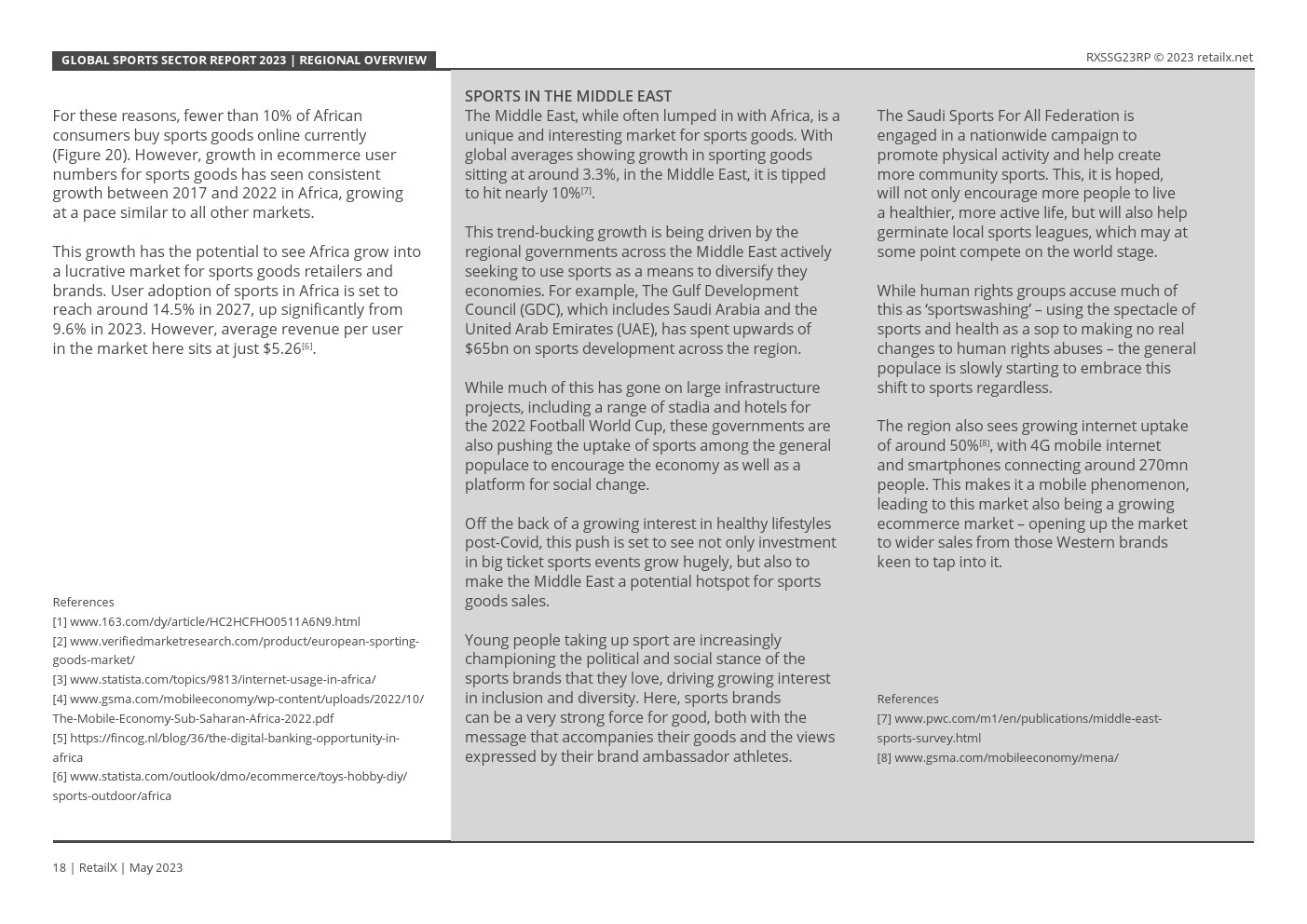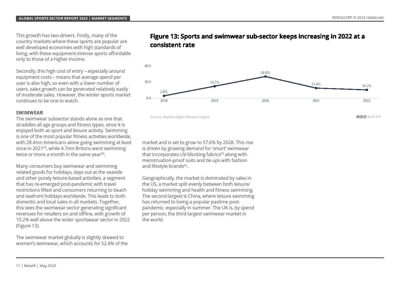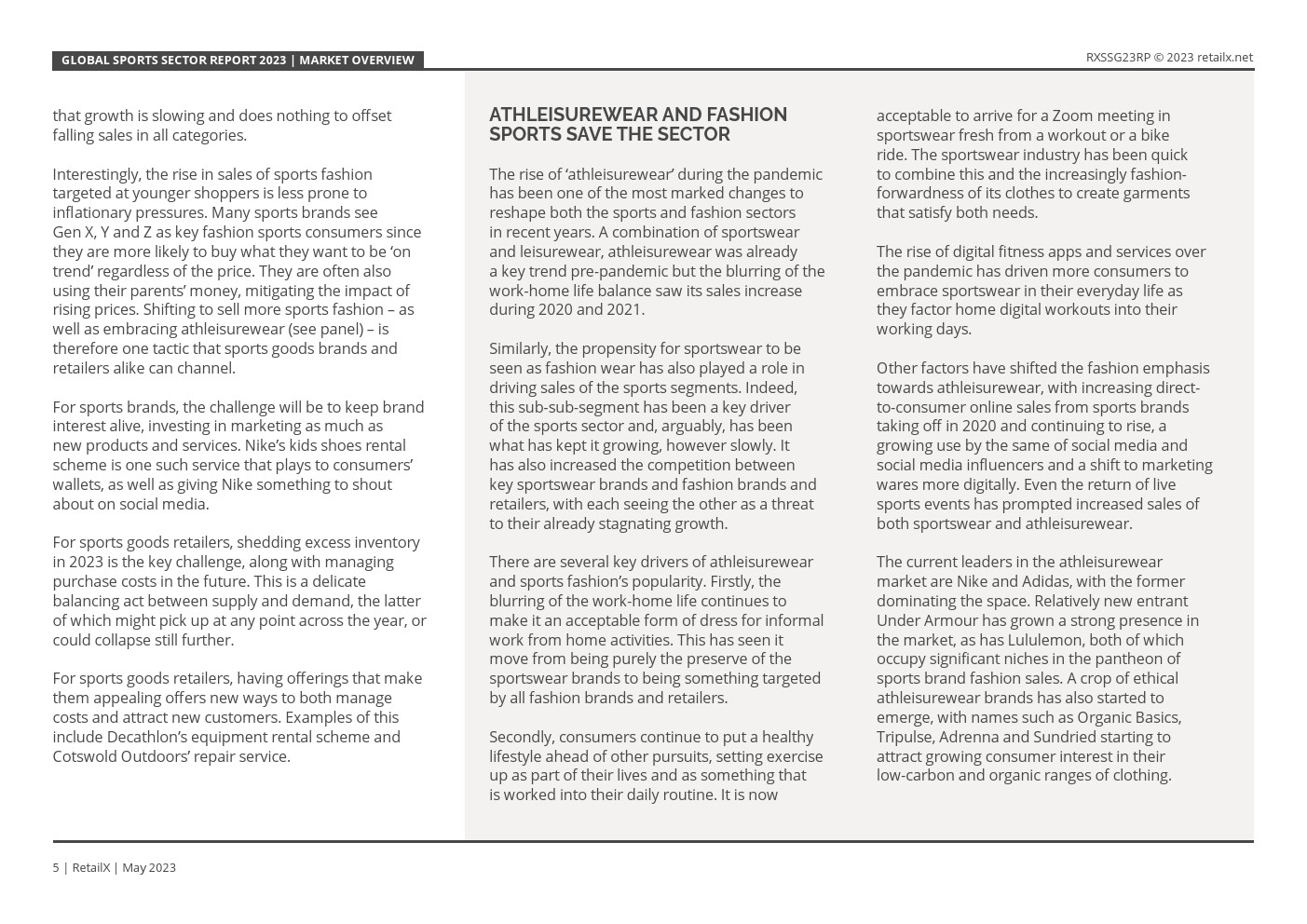 报告还探索了更多地使用科技来参与竞争的产品,并为运动和健身添加其他维度,吸引新的、年轻的用户,他们寻求更有趣、社交和沉浸式的体验。运动服装在时尚界的持续和日益提高的影响也将继续成为该行业的福音,即使在这些充满挑战的时期,这一行业仍在保持增长。