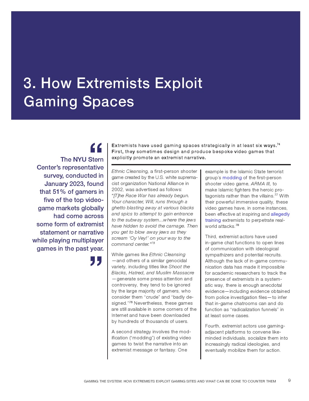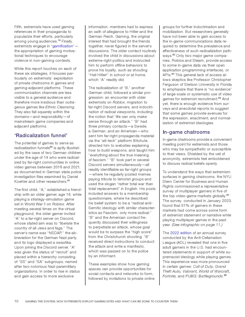 纽约大学Stern商学院发布了“游戏系统报告”,分析了极端分子如何利用游戏网站的,以及如何应对这一问题。