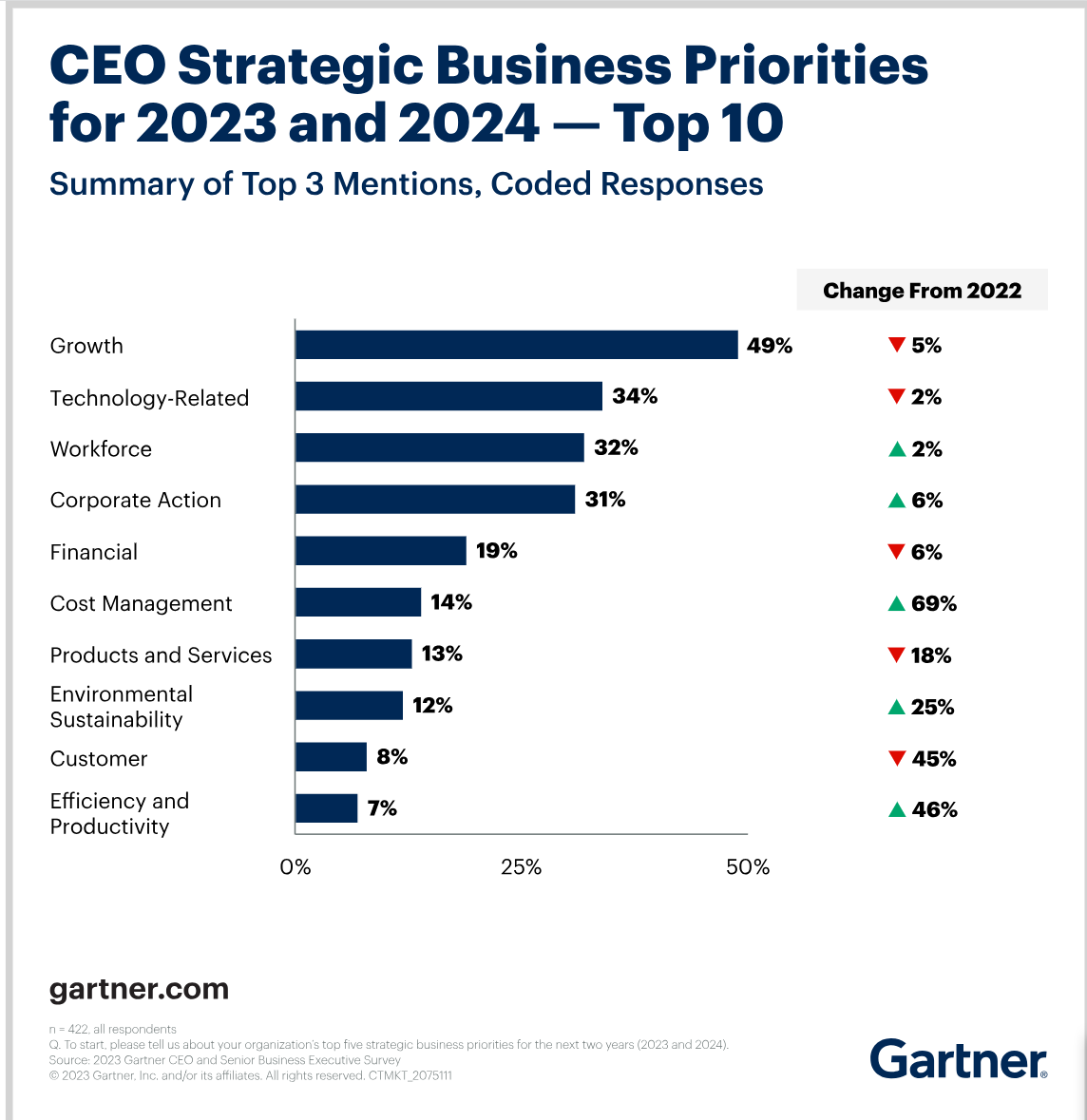 高管们正在谨慎地应对当今的经济现实,但也有意投资于未来。2023年的当务之急应该包括提高企业生产率和制定新的3-7年增长战略。