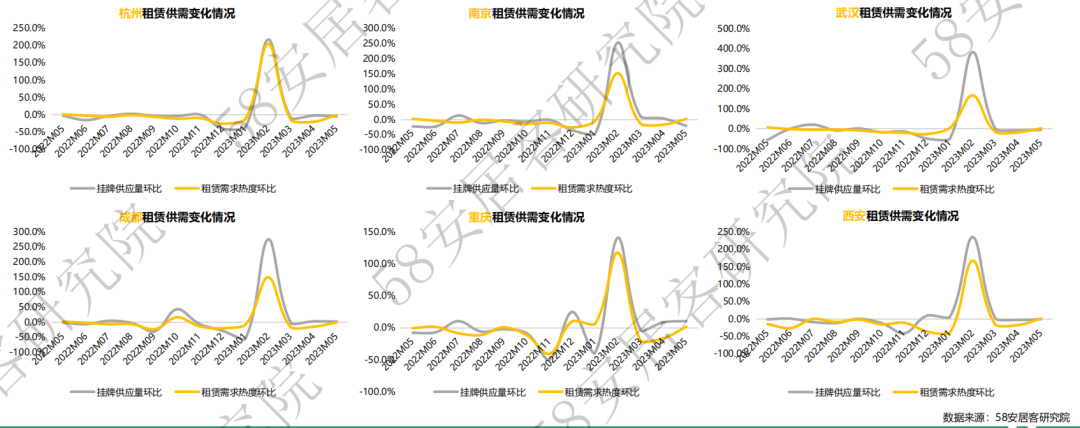 6.二线供需环比差异显著,武汉、成都需求相对更强
