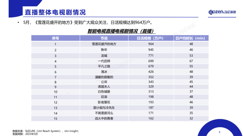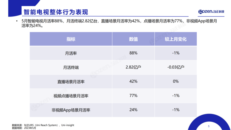基于家庭智能大屏来看,根据勾正科技(Gozen)显示,5月: