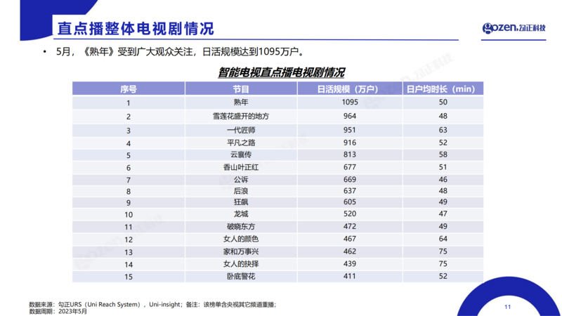 直点播剧:当代都市剧《熟年》,日活规模达到1,095万户。