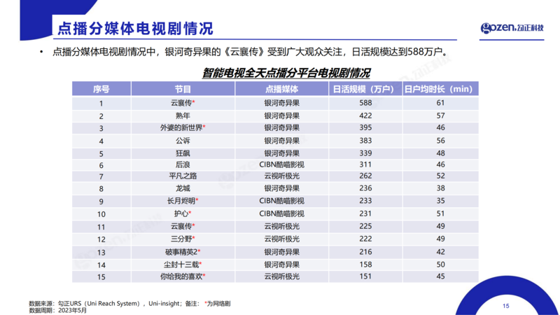 点播剧分平台:银河奇异果的江湖奇谋剧《云襄传》,日活规模达到588万户。