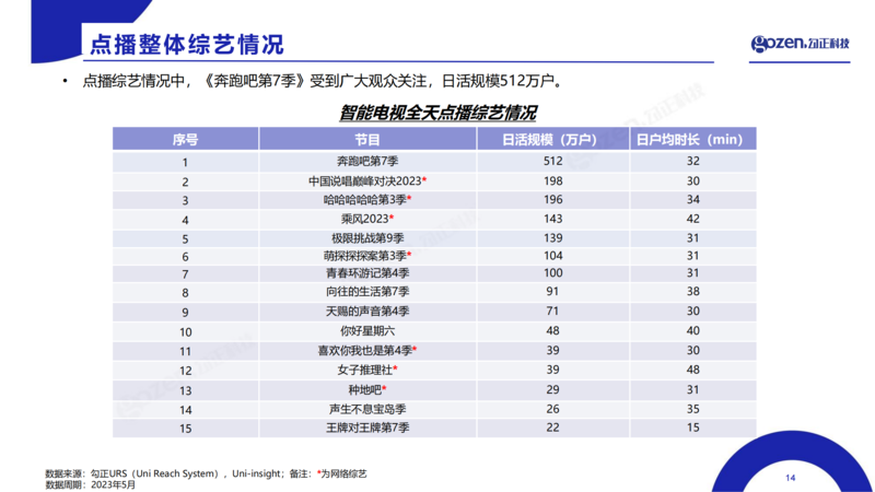 点播综艺:户外竞技真人秀《奔跑吧第7季》,日活规模达到512万户。