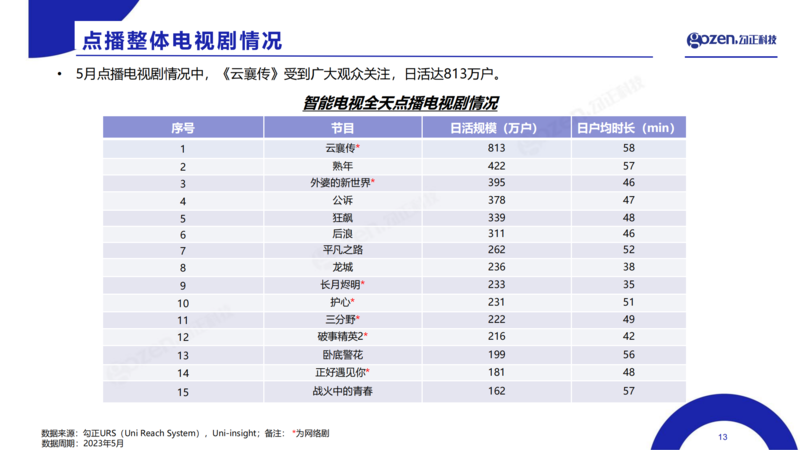 点播剧:江湖奇谋剧《云襄传》,日活规模达到813万户。