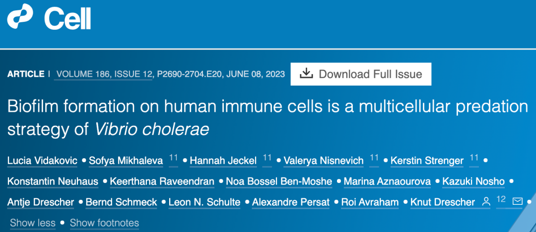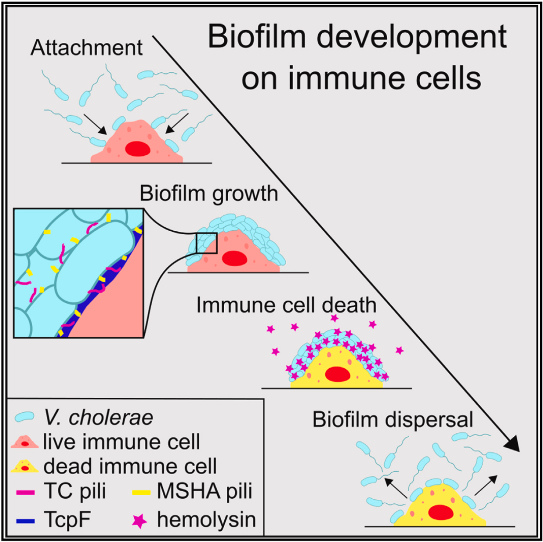 [1].Lucia Vidakovic, Sofya Mikhaleva, et al. Biofilm formation on human immune cells is a multicellular predation strategy of Vibrio cholerae. Cell. 2023. doi:10.1016/j.cell.2023.05.008