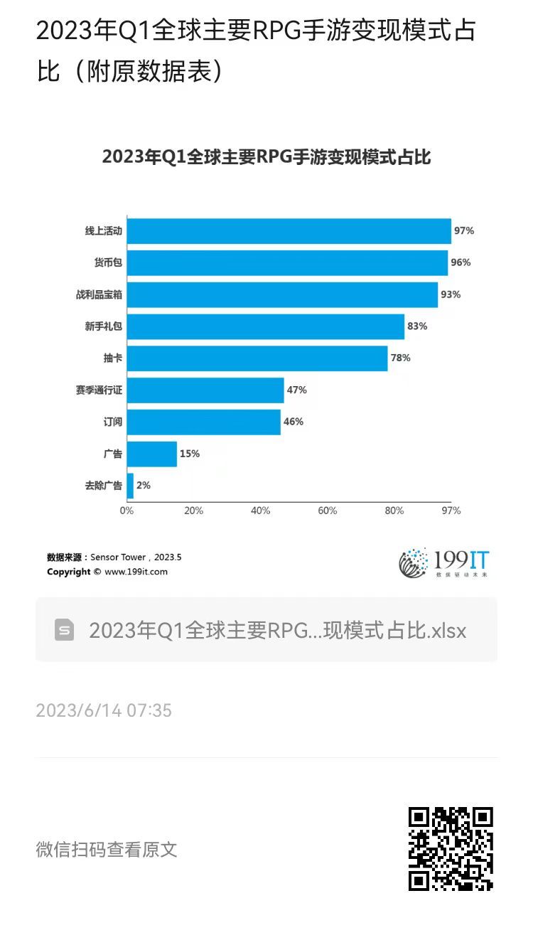 2023年Q1全球主要RPG手游变现模式占比(附原数据表) ​​​