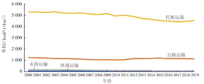 图5 日本不同货运方式单位能耗变化情况(2000-2019年)