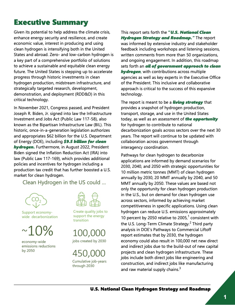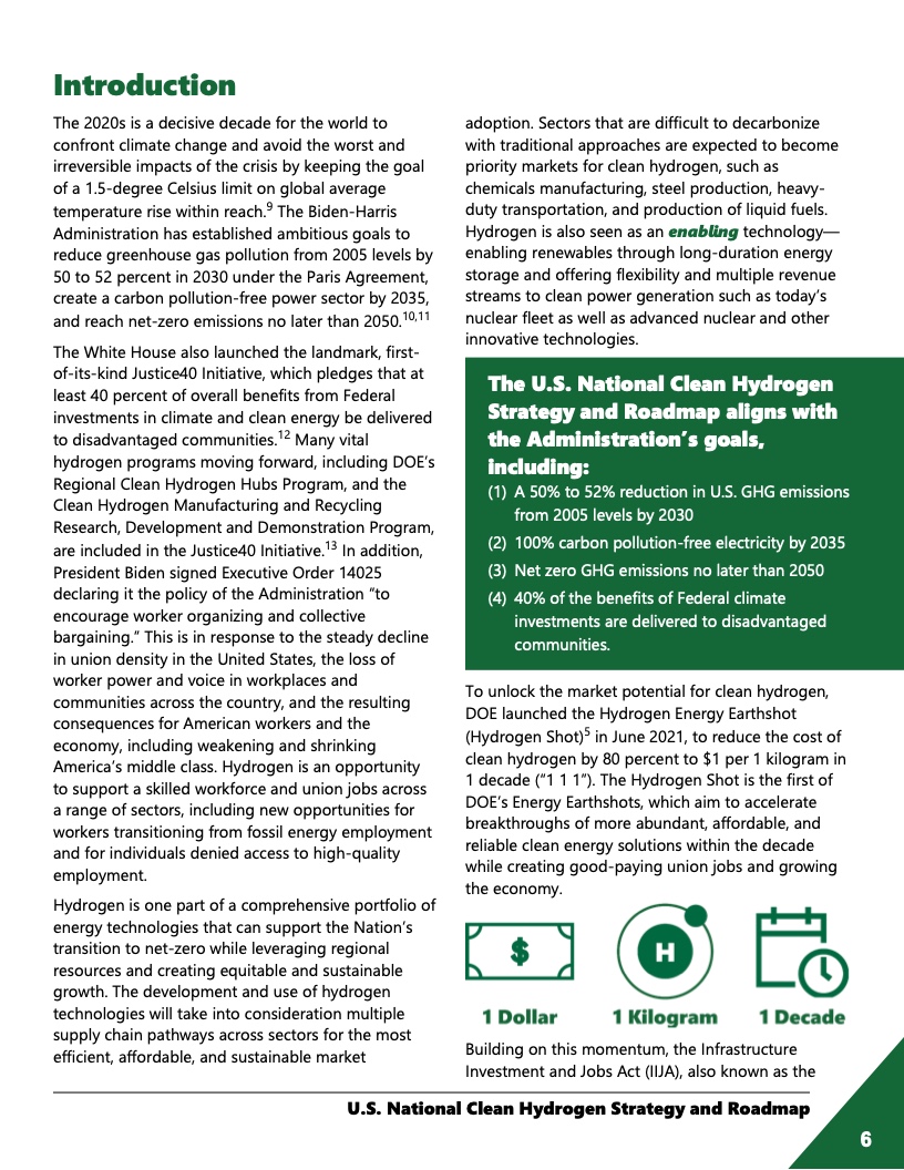为了确保美国氢能战略满足各方需求,该《路线图》吸纳了尽可能广泛的氢能利益相关方意见,并于2022年9月以草案形式发布向公众征求意见。此次发布的最终版本综合了来自拜登政府、工业界、学术界和非营利部门的利益相关者以及美国各州、地方和部落政府的反馈,并纳入了美国能源部 2023年3月发布的《清洁氢能的商业化起飞路径》(Pathways to Commercial Liftoff: Clean Hydrogen) 报告中的内容。考虑打破快速变化的市场和技术及政策环境,《路线图》将至少每三年更新一次。