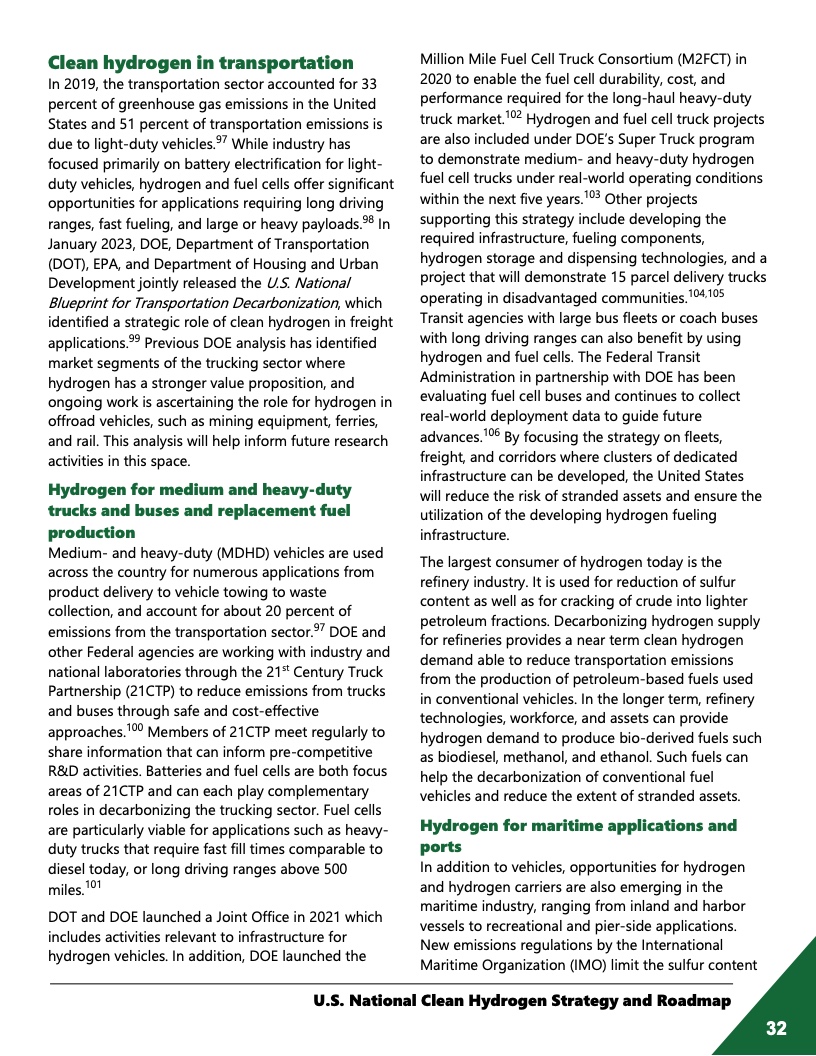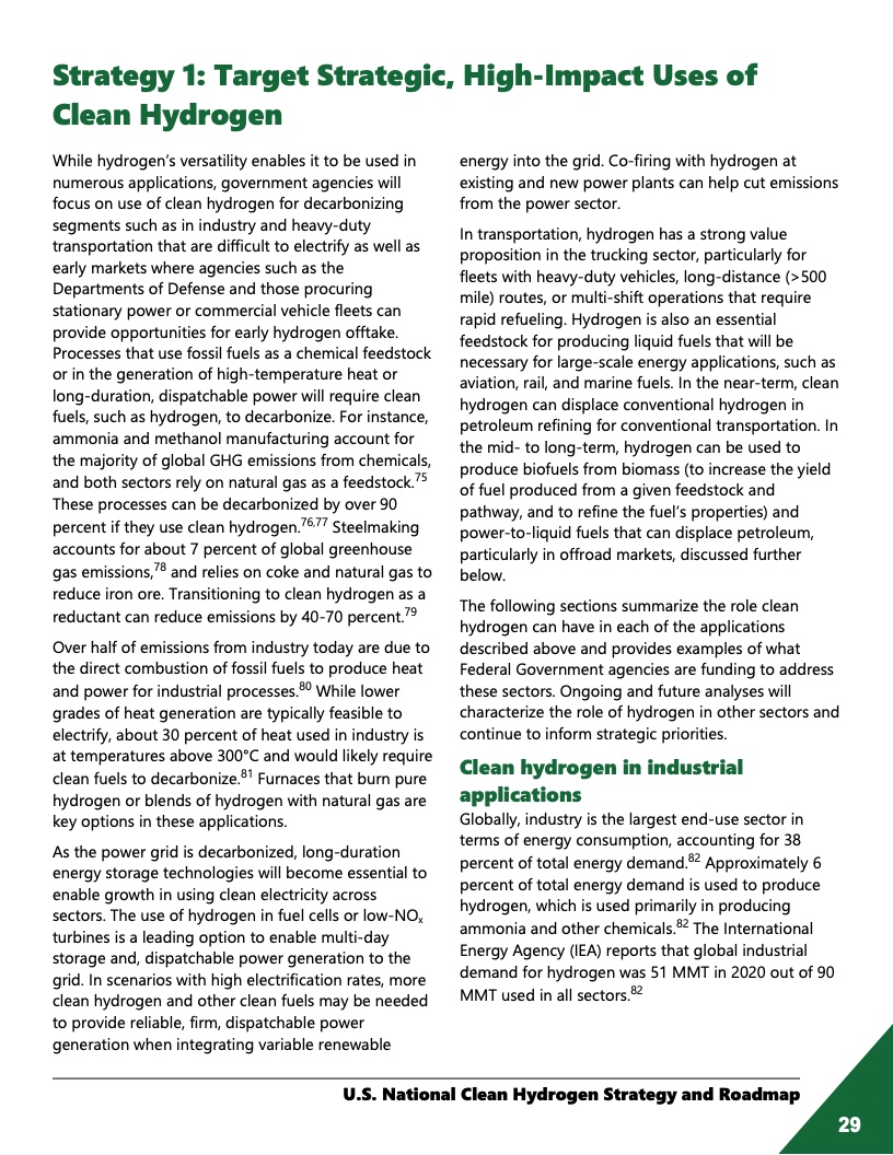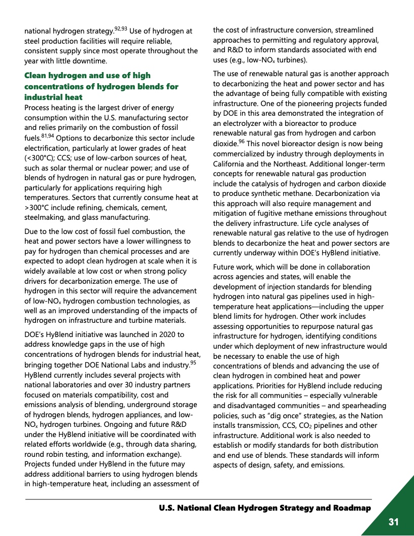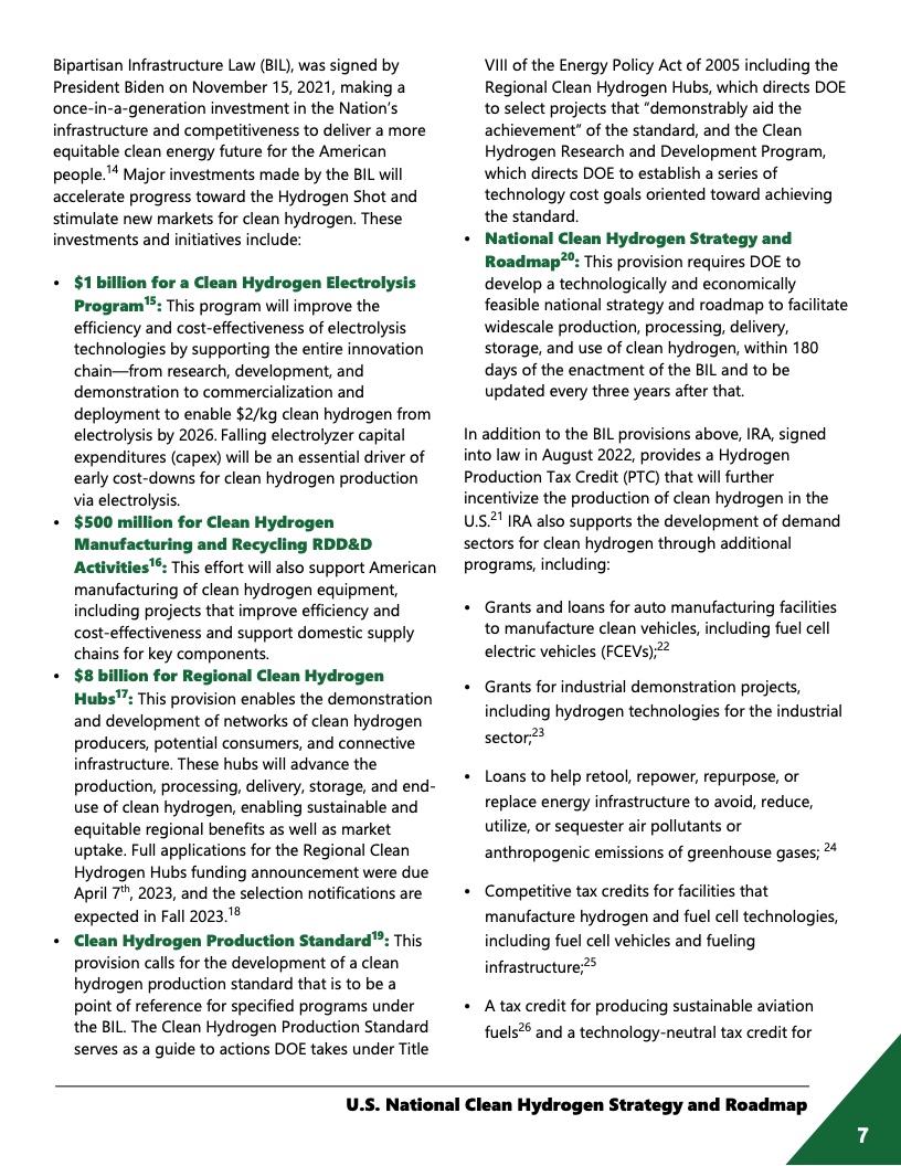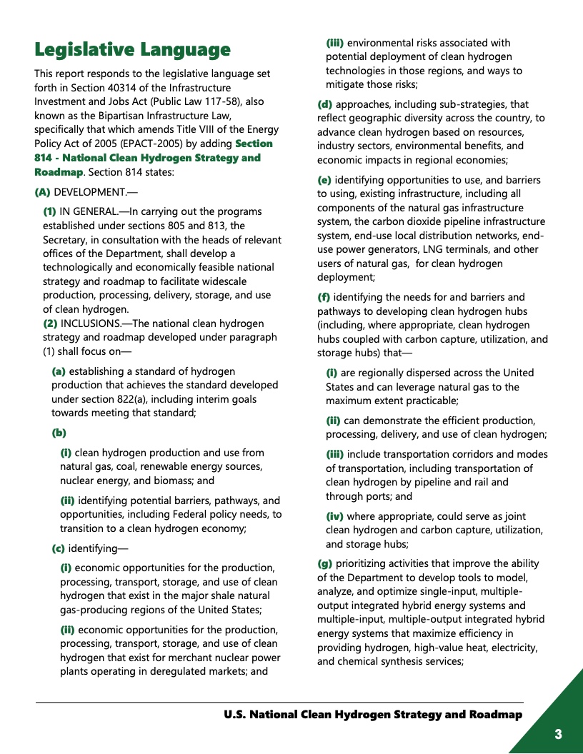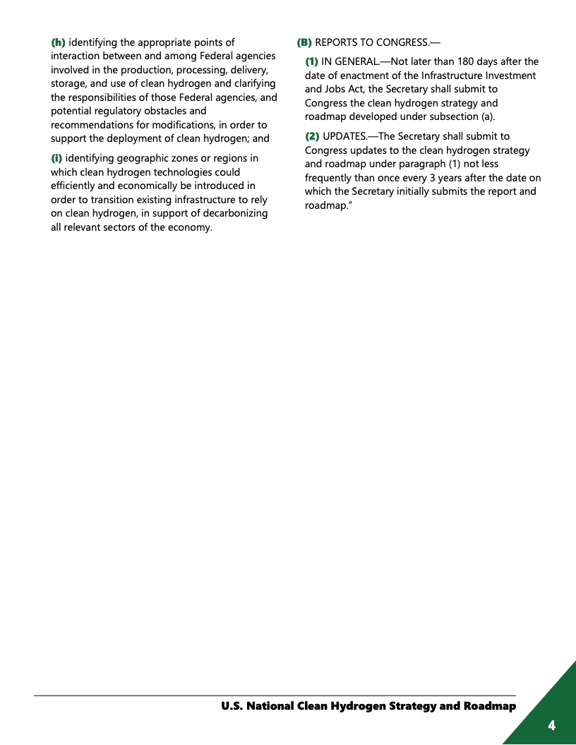 关注区域氢能网络。投资和扩大区域清洁氢中心,确保在重点氢能用户附近能够进行大规模清洁氢生产,共享基础设施。此外,这些投资将推动实现大规模的氢能生产、分配和存储,以促进市场发展。如果实施得当,这些区域氢能网络将为当地提供公平、多样化和可持续的发展机遇。优先事项将包括减少环境影响、创造就业机会、确保长期承购合同,并快速带动美国国内制造业和私人投资。