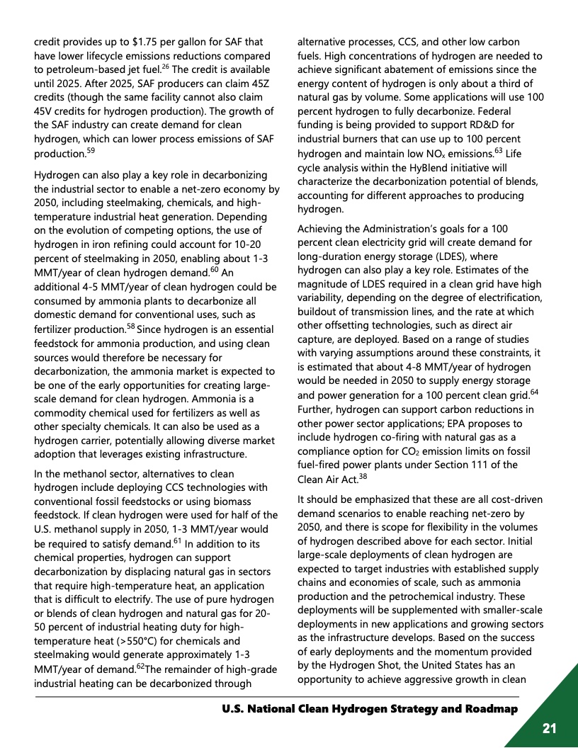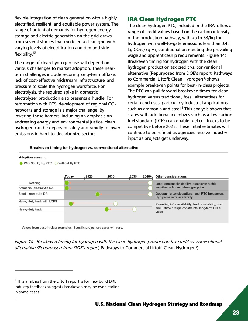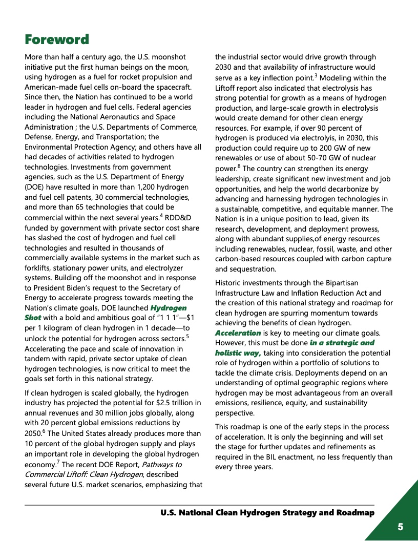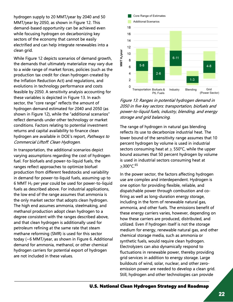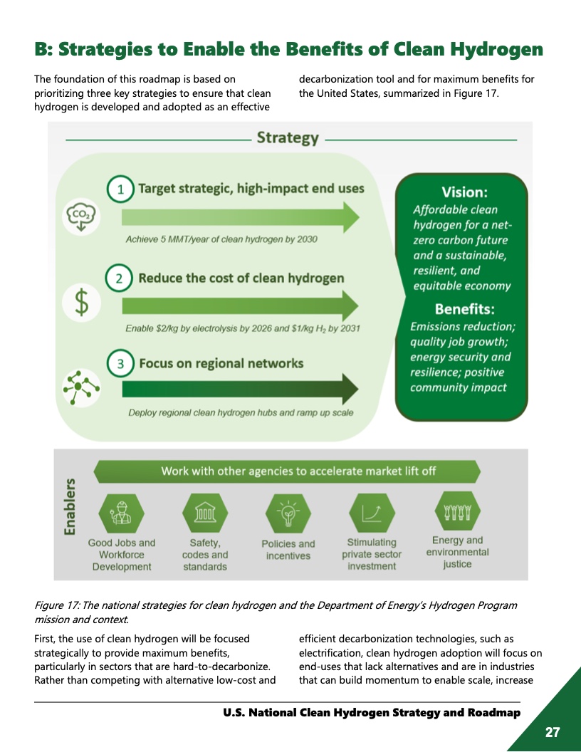 关注区域氢能网络。投资和扩大区域清洁氢中心,确保在重点氢能用户附近能够进行大规模清洁氢生产,共享基础设施。此外,这些投资将推动实现大规模的氢能生产、分配和存储,以促进市场发展。如果实施得当,这些区域氢能网络将为当地提供公平、多样化和可持续的发展机遇。优先事项将包括减少环境影响、创造就业机会、确保长期承购合同,并快速带动美国国内制造业和私人投资。