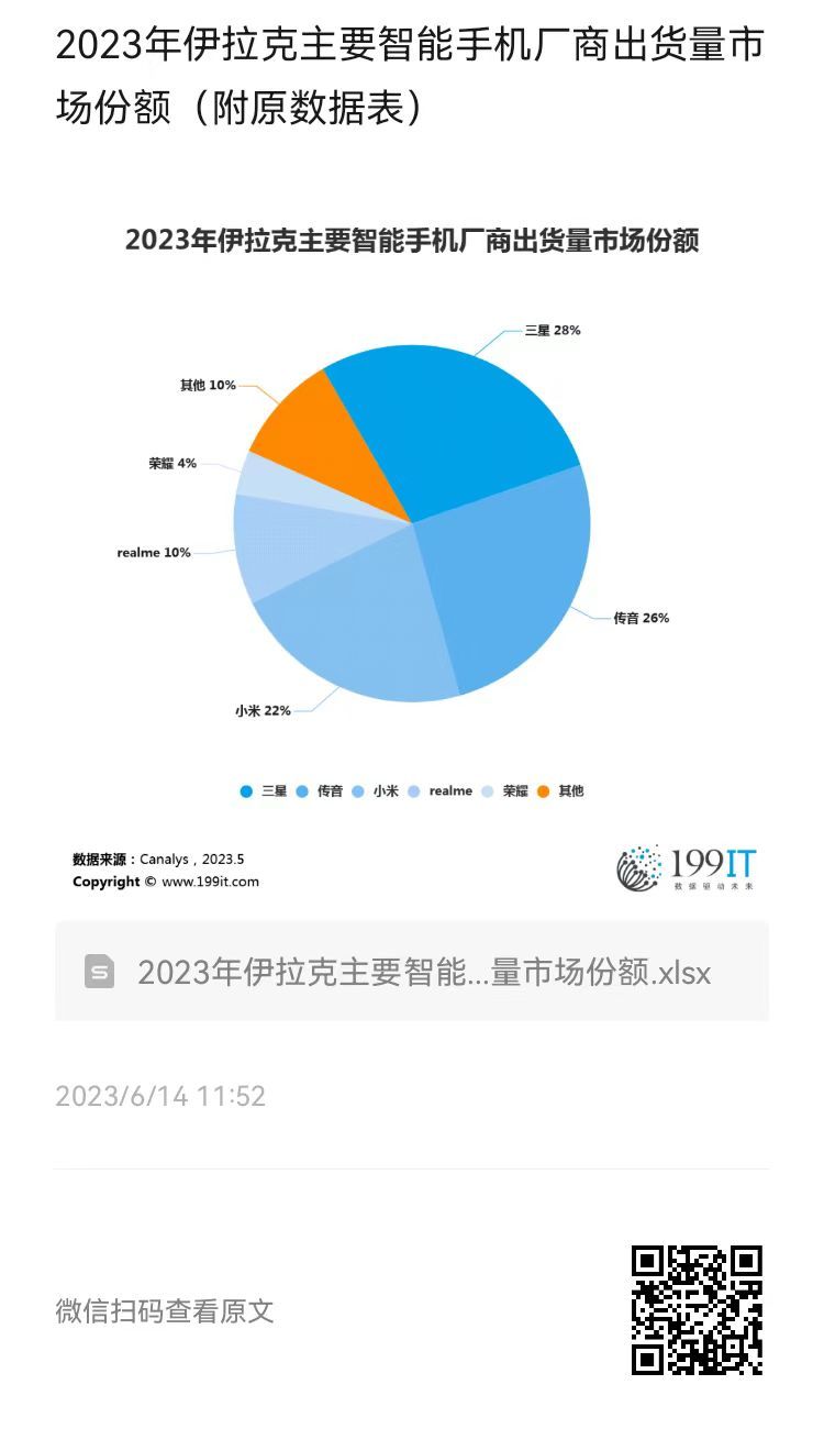 2023年伊拉克主要智能手机厂商出货量市场份额(附原数据表) ​​​