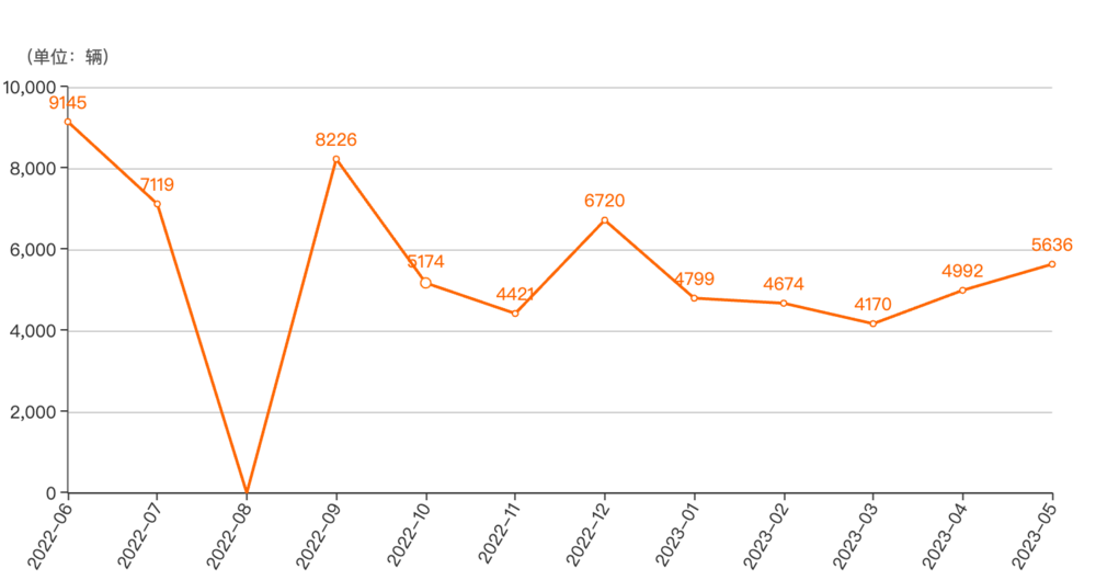 纯油车型上市的第二个月,汉兰达月销达到8226台,但之后,迅速跌落到5000台左右,此后再也没有恢复到8000台以上。