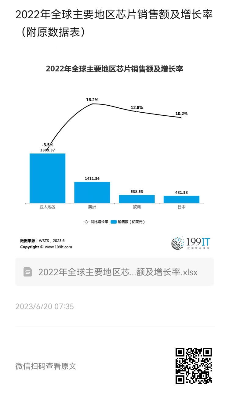 - 2023年全球主要地区芯片销售额及增长率预测(附原数据表)