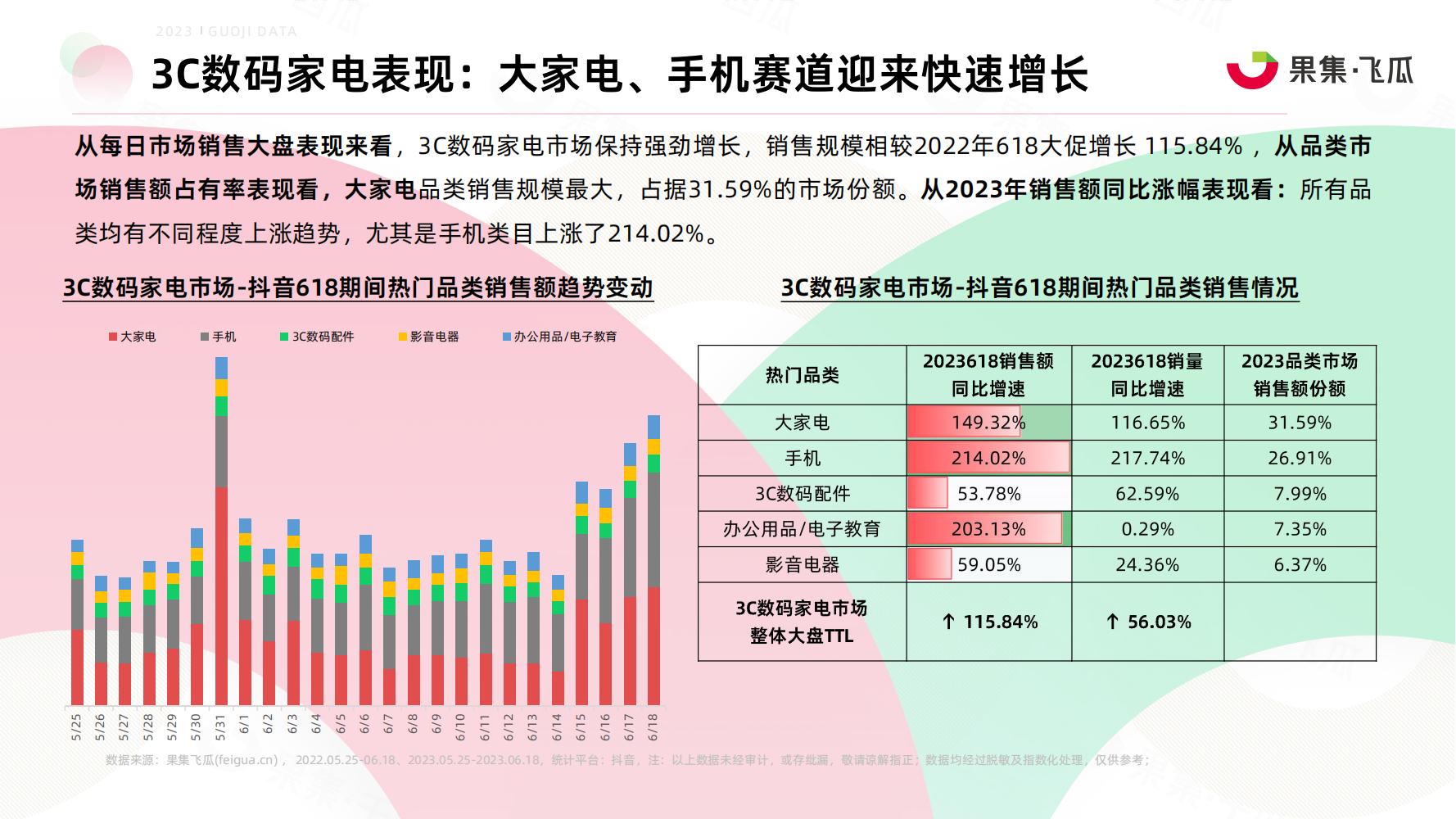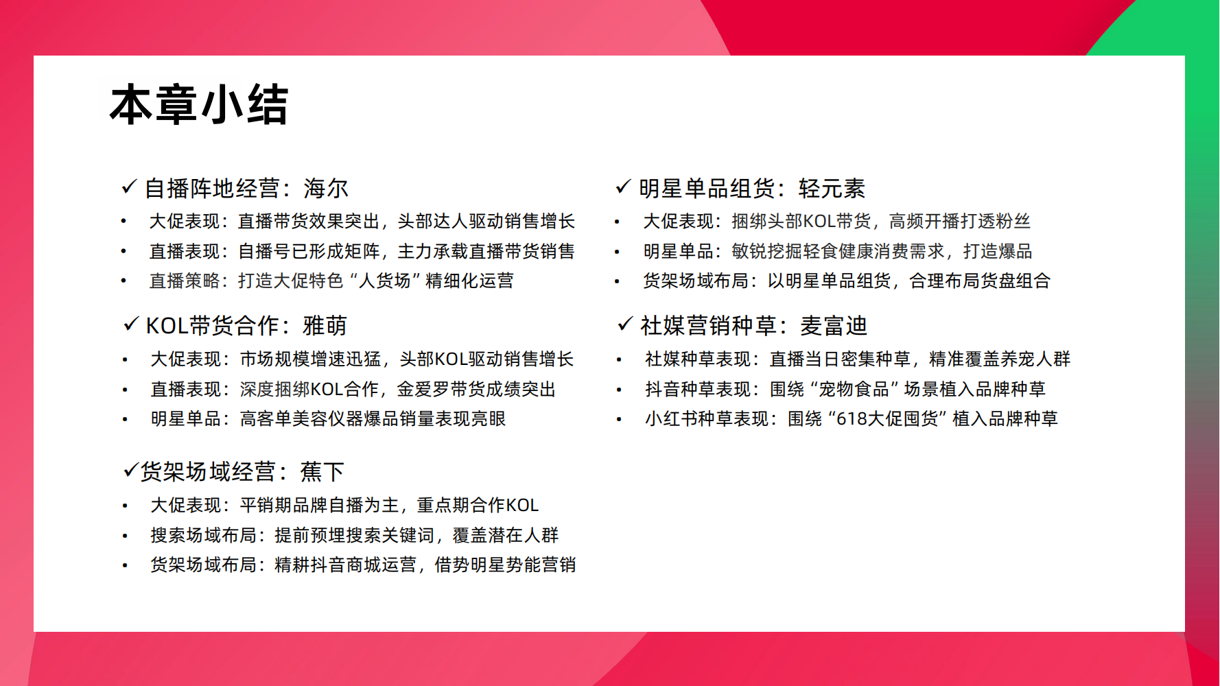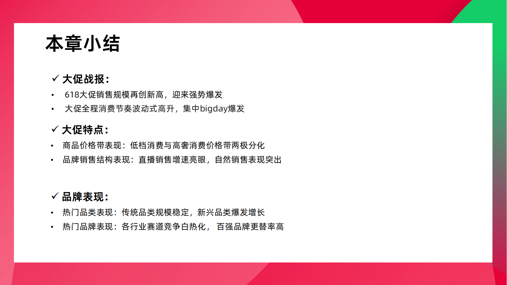 2023年618大促已经落下帷幕,作为消费复苏后的首场大促,抖音618电商成绩表现如何?哪些百亿赛道持续升温,市场规模快速增长?本报告从2023年抖音618好物节电商数据表现出发,解析热销品类发展趋势、洞察高增长品牌案例,为品牌营销提供大促节点参考,以帮助品牌提高营销效率,实现电商生意增长。