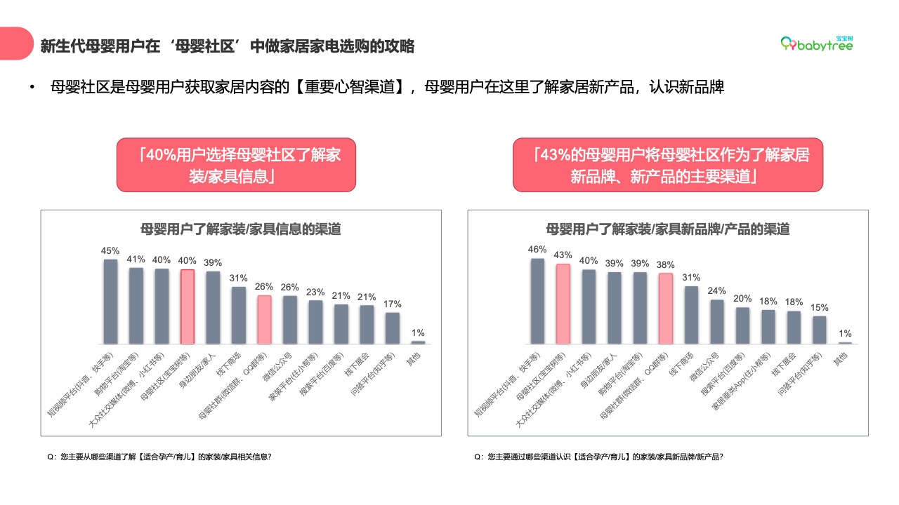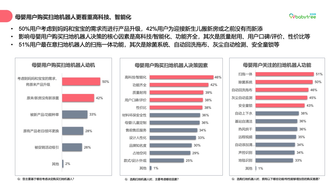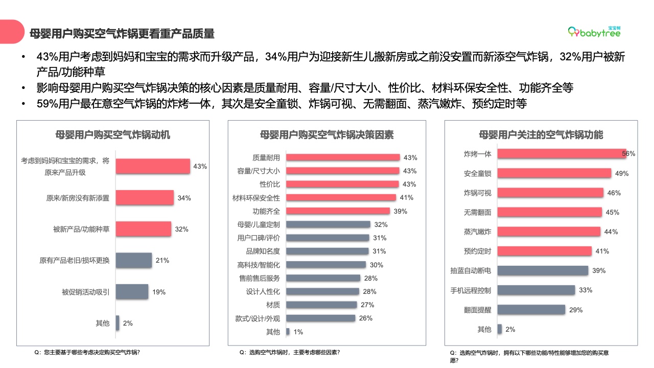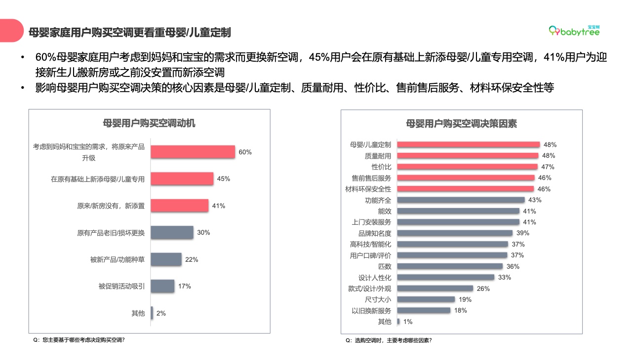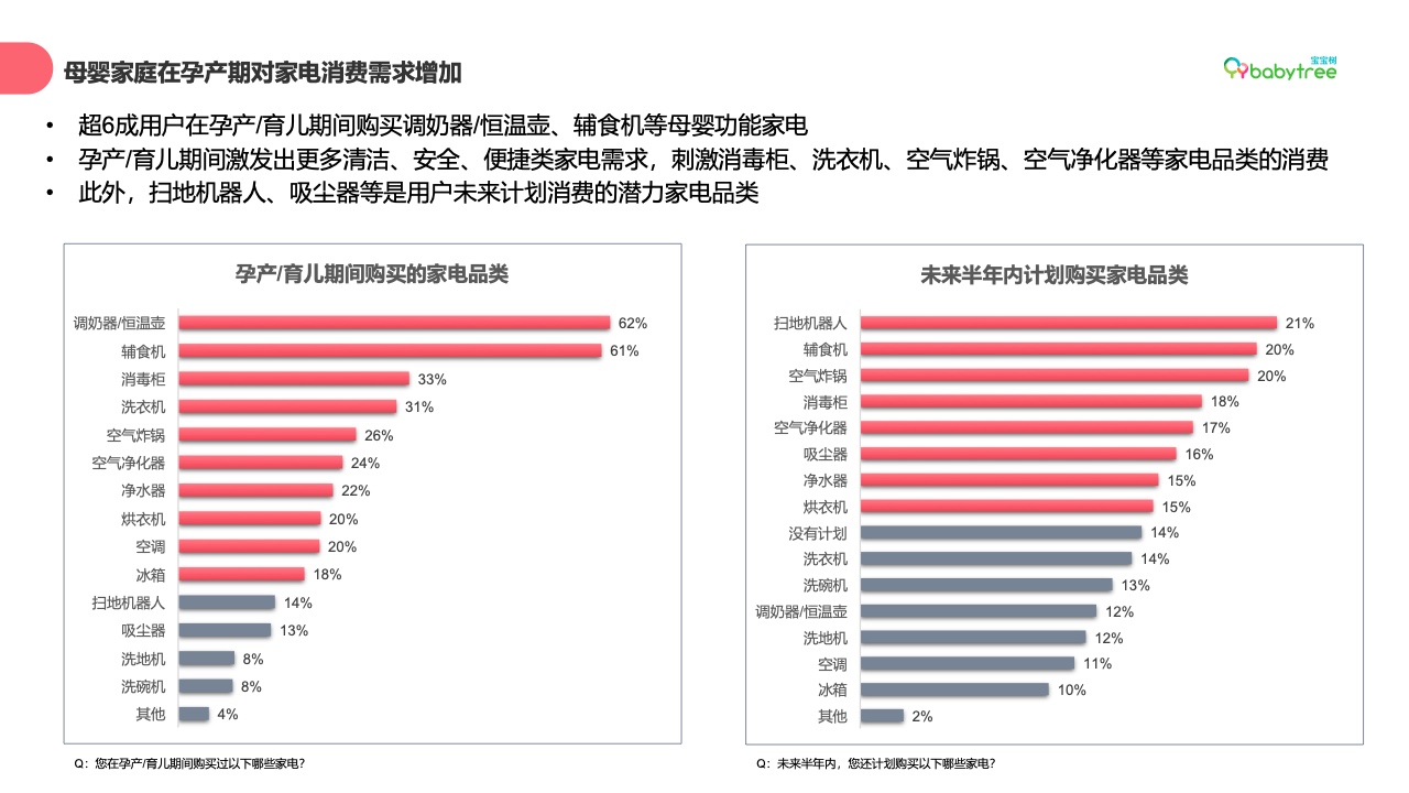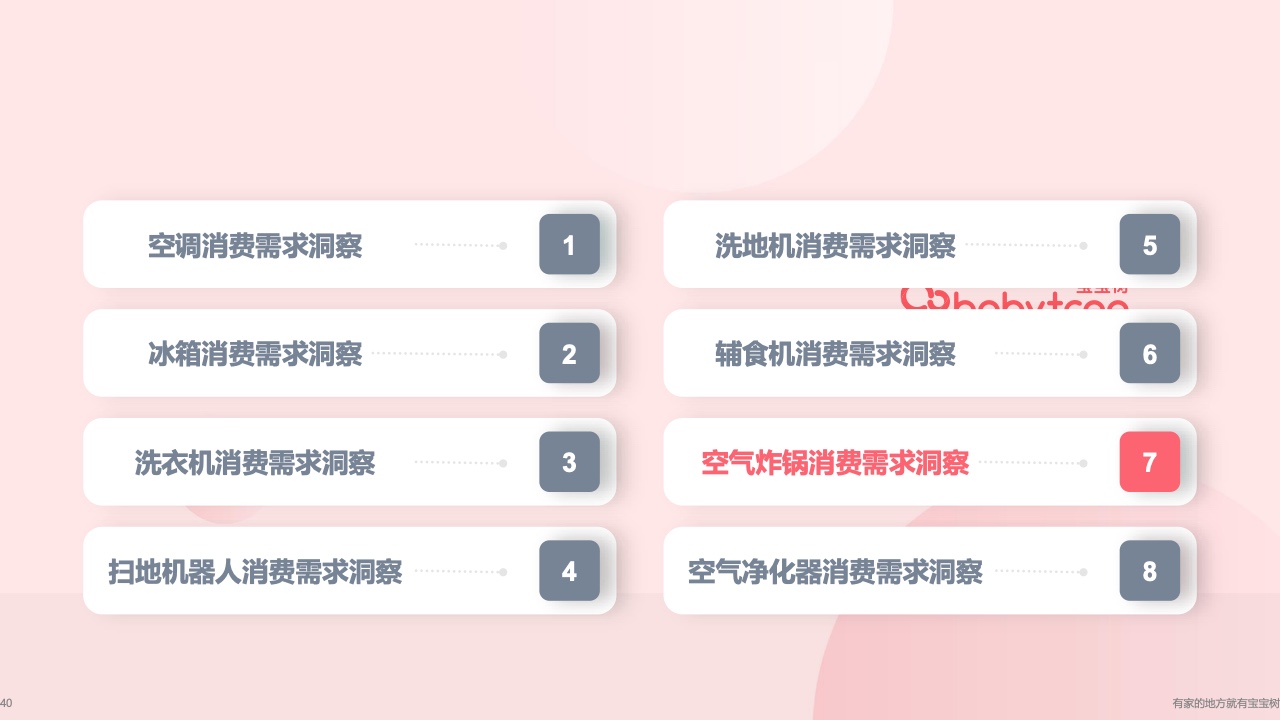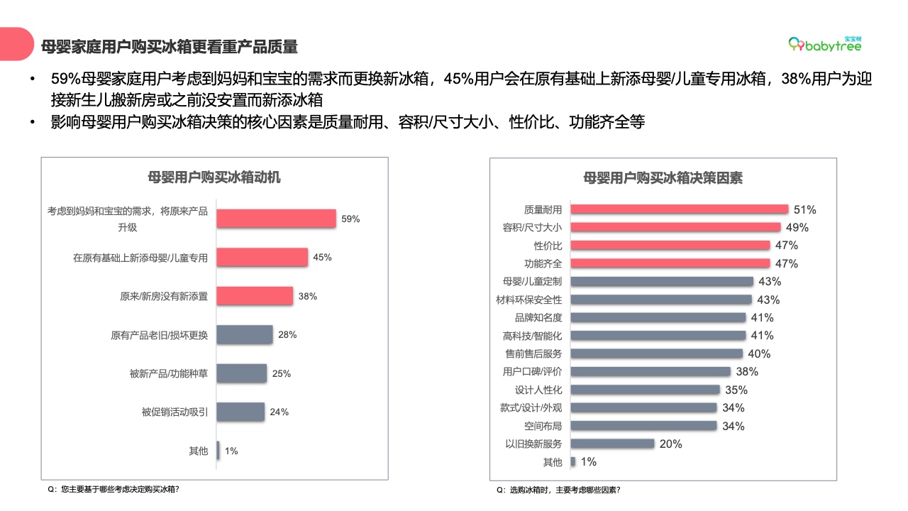 • 随着新生代用户消费水平的日益提升,其对于家庭生活品质的追求也越来越高,消费升级催生了 如绿色/环保、品质/健康、智能/便捷、功能/实用、个性/美观等多元需求。与此同时,随着孩子 的到来/即将到来、家庭生活方式的变迁,对于家庭的舒适度、安全性、功能性、便捷度等方面 有着更高的诉求。