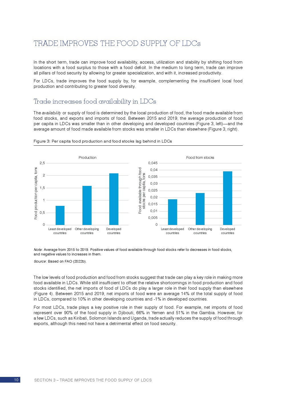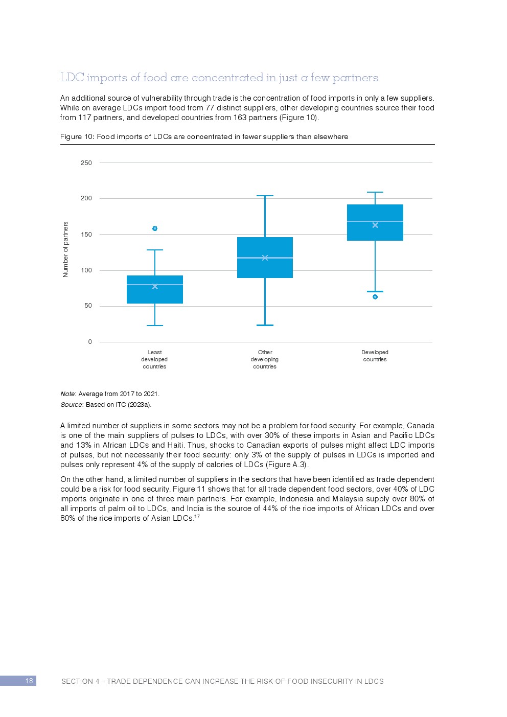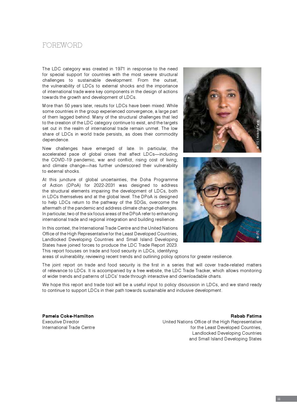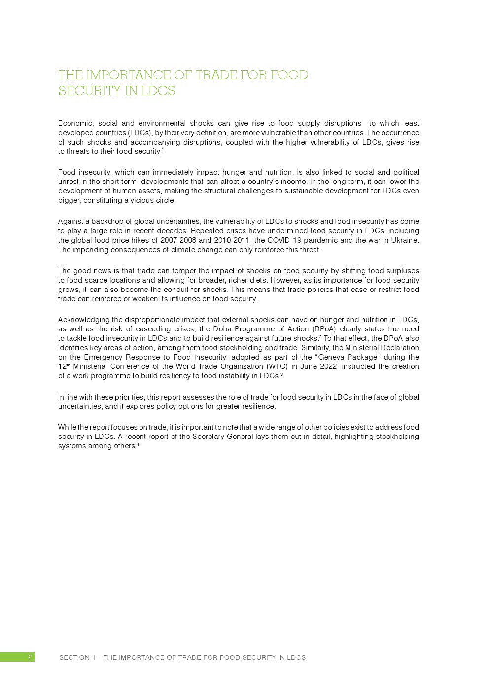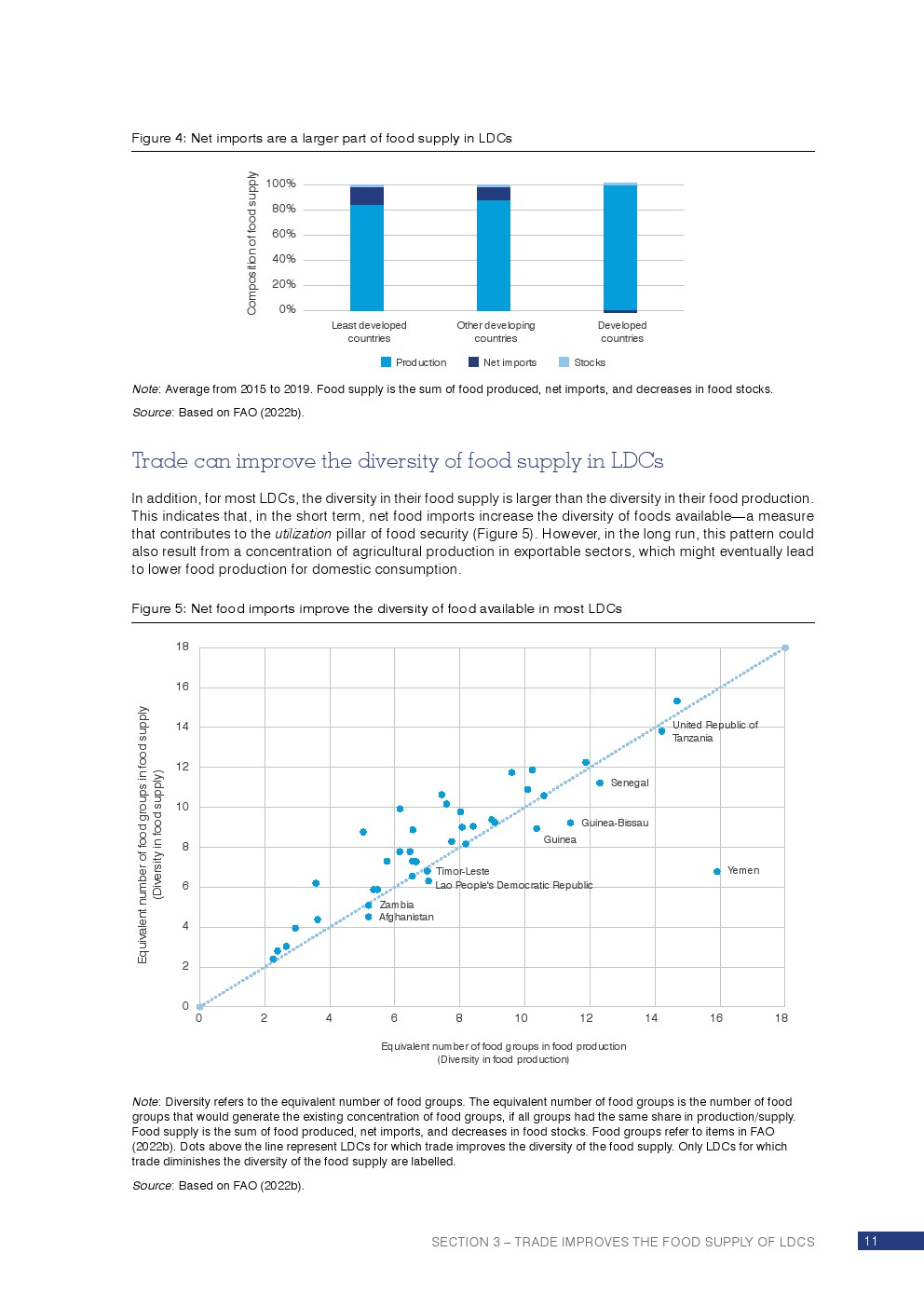 国际贸易中心发布了“2023年不发达国家贸易报告”。最不发达国家60%以上的人口面临粮食不安全问题,是其他发展中国家的两倍,是发达国家的六倍。贸易可以改善人们获得粮食的机会,但它也可以传播冲击的后果,如冲突、气候变化或国际价格或贸易政策的变化。在全球不确定的背景下,报告评估了贸易对最不发达国家粮食安全的作用,并概述了提高抵御力的政策选择。
