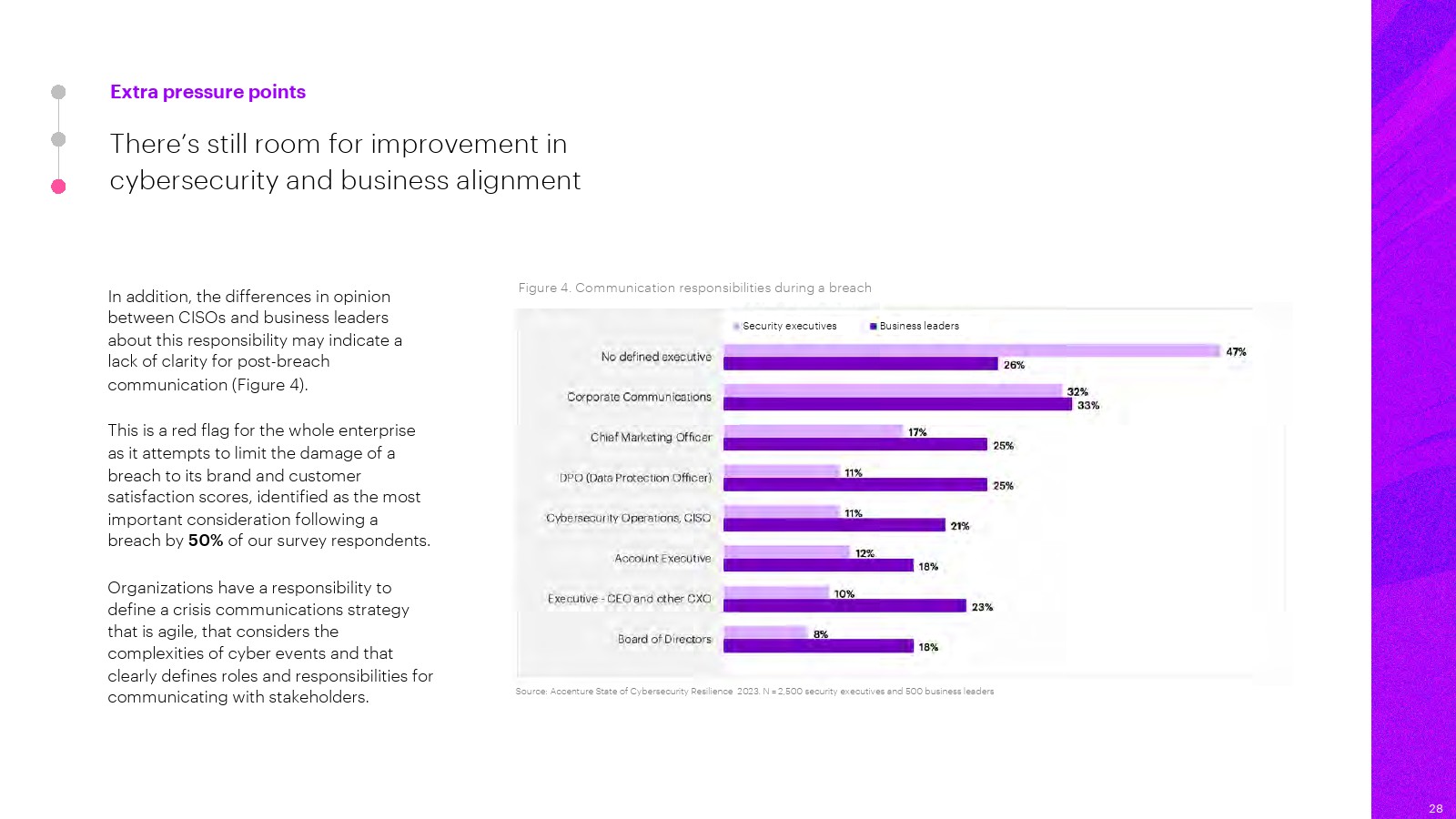 埃森哲发布了“2023年网络安全弹性报告”。最新研究现实,将网络安全计划与业务目标紧密结合的企业实现收入增长、市场份额和提高客户满意度的可能性要高18%。平均而言,降低网络安全漏洞/事件成本的可能性要高26%。