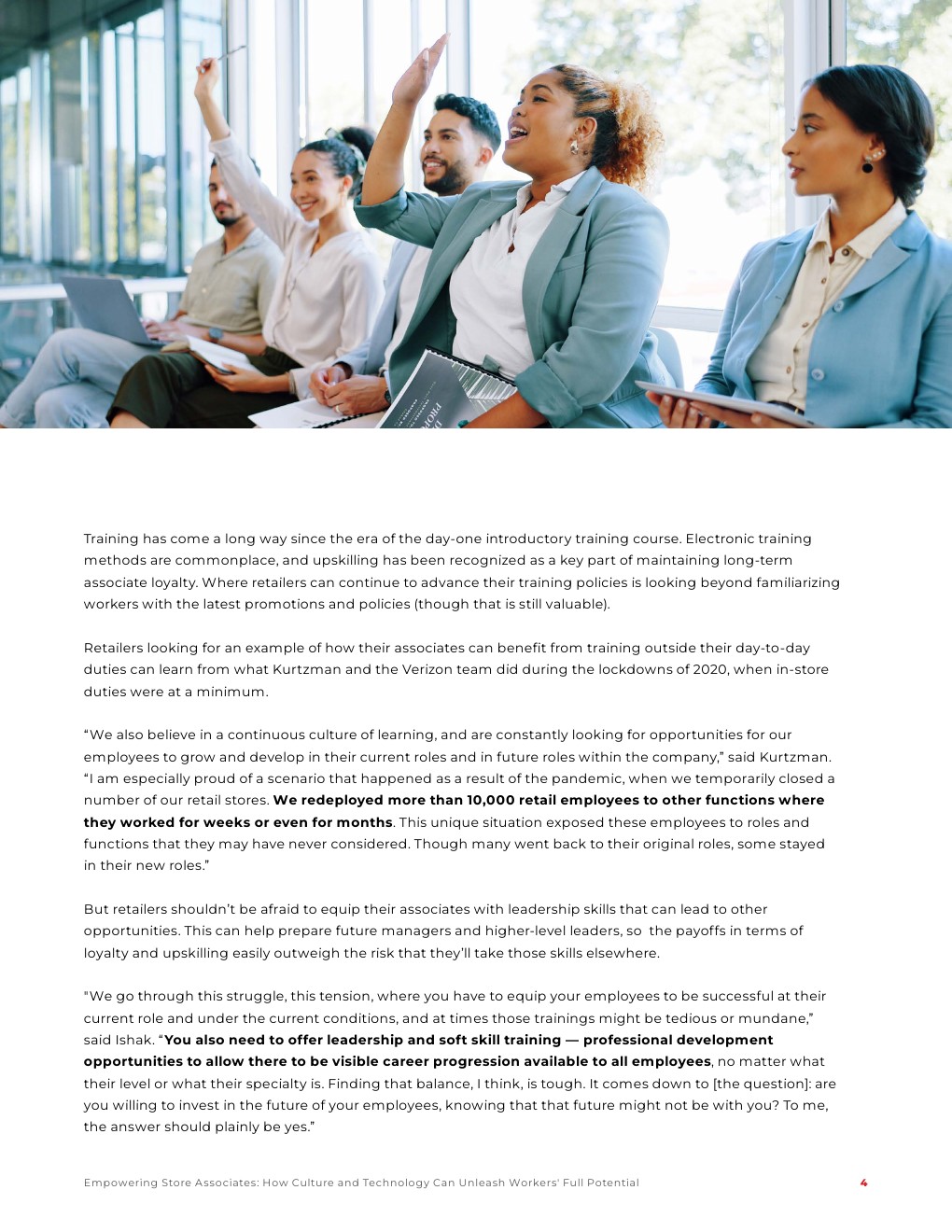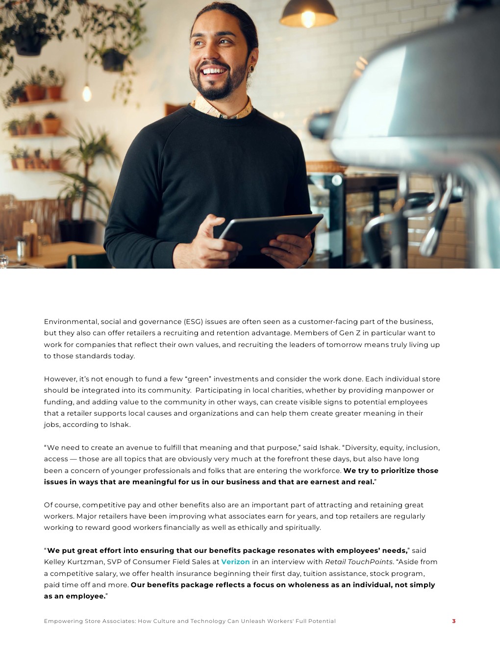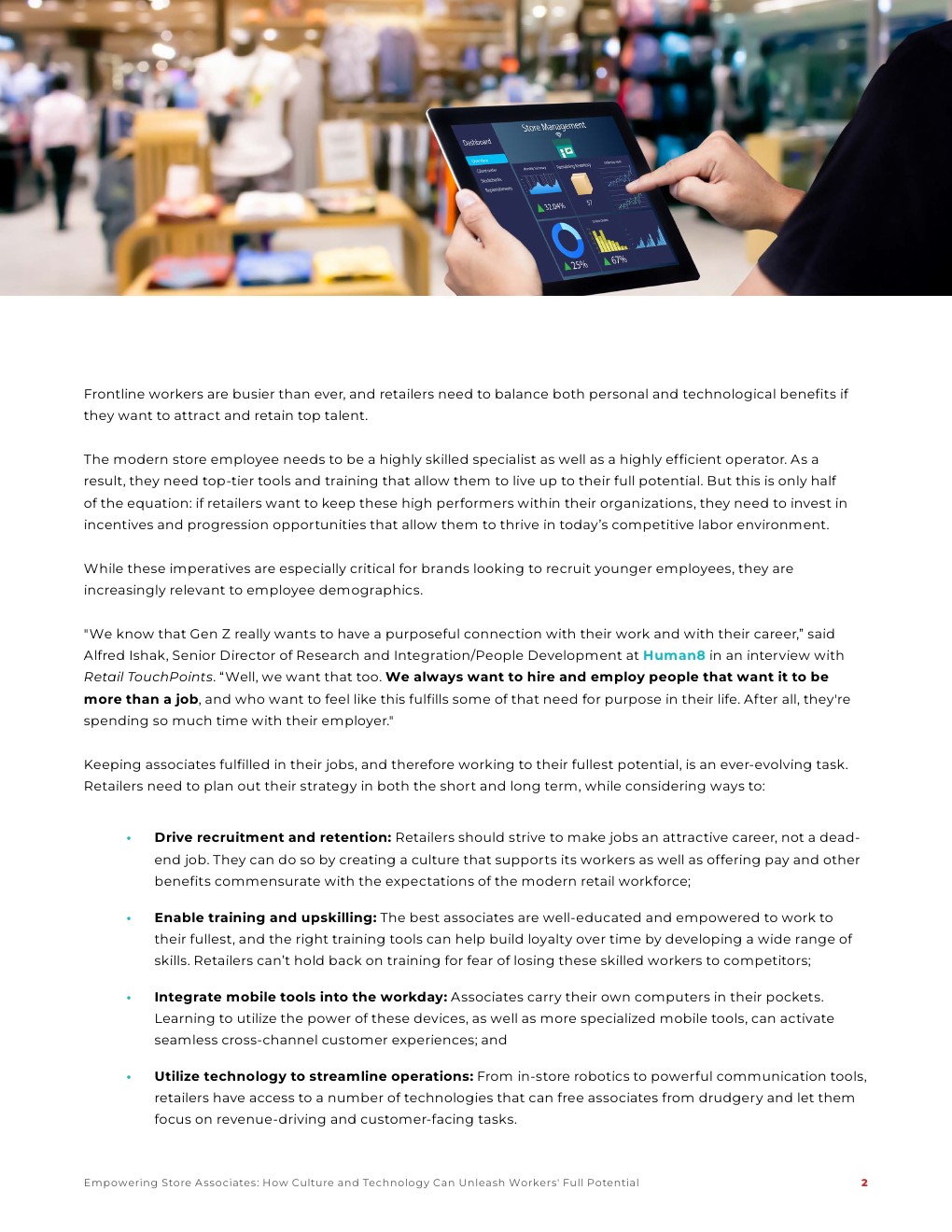 现代的商店员工不仅要成为一个高效率的操作员,还要成为一个高技能的专业人员。因此,他们需要顶级的工具和培训,使他们能够充分发挥自己的潜力。但这只是等式的一半:如果零售商想留住这些高绩效员工,他们需要投资于激励措施和晋升机会,让他们在当今竞争激烈的劳动力环境中茁壮成长。