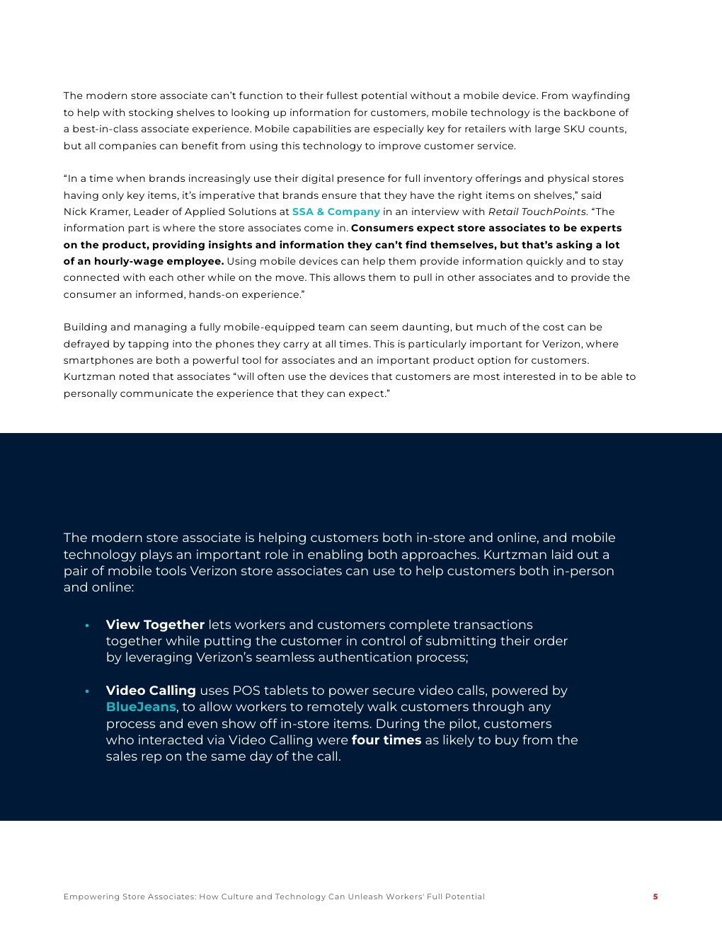 将移动工具整合到工作中:员工将自己的电脑放在口袋里。学会利用这些设备的力量,以及更专业的移动工具,可以激活无缝的跨渠道客户体验。