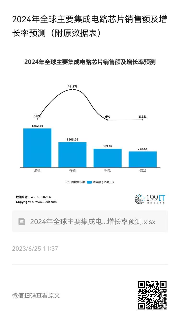 - 2023年全球主要集成电路芯片销售额及增长率预测(附原数据表)