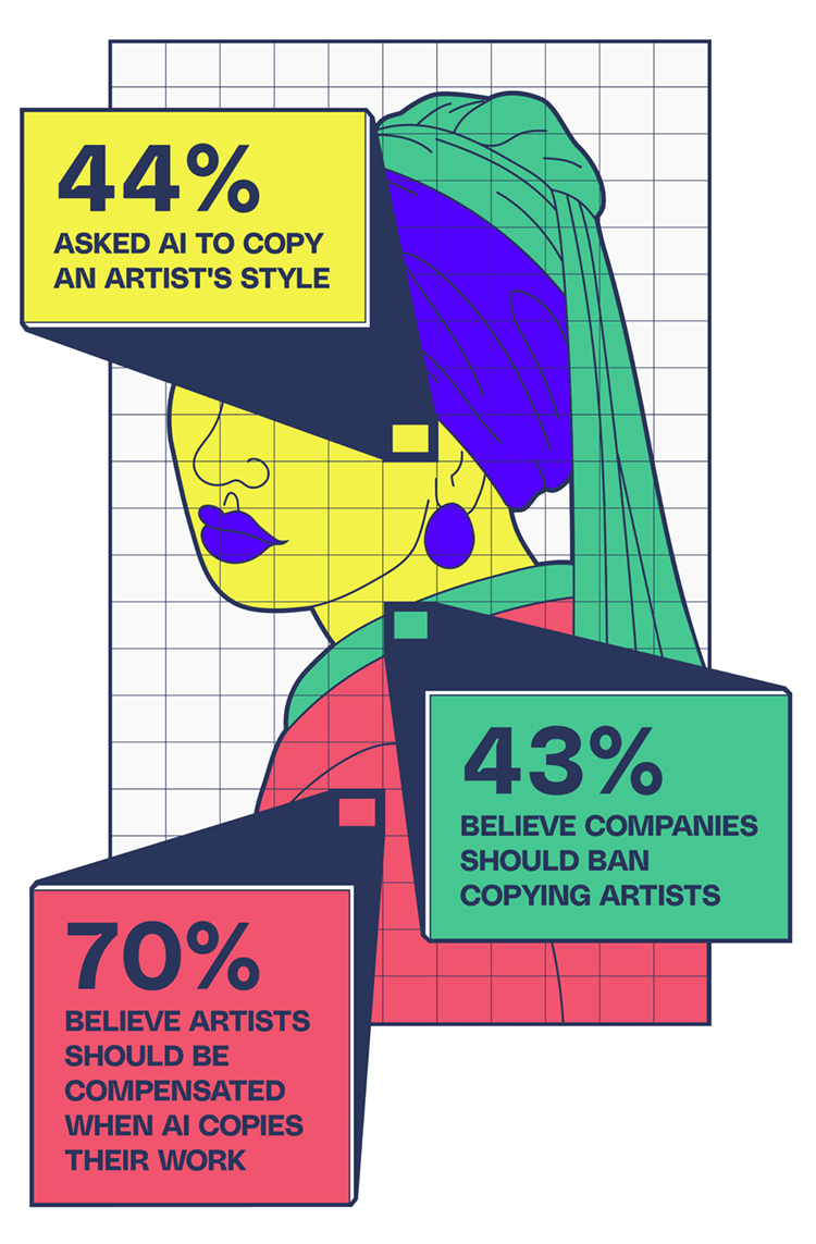 调查还显示,人们正在使用人工智能工具进行创造性实验,如生成音乐、视频和文章,以及修补照片。然而,像编程这样的专业应用却不太常见。人们也一直在使用人工智能系统来回答问题,这表明ChatGPT、Bing和Bard等聊天机器人可能会取代搜索引擎。民意调查发现,人工智能正在扩大人们可以创造的领域,艺术品是创意领域内最受欢迎的类别。超过四分之三的受访者同意人工智能工具需要被控制。