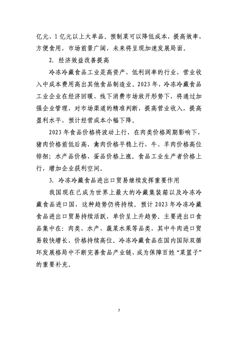 在保供稳价、助企纾困各项政策措施推动下,2022年,冷冻冷藏食品工业生产增长,企业效益回升。2020 年、2021年新冠疫情对行业造成严重冲击,企业生产成本上升,经济效益深度下滑,冷冻冷藏食品企业通过加强企业管理,落实提质增效措施,2022 年经济效益好转,利润实现较快增长,营业收入利润率比上年增加,综合经济效益水平有所提高,企业家生产信心得到恢复。