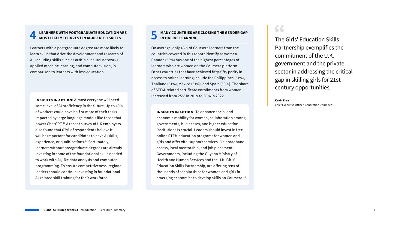 与受教育程度较低的学习者相比,拥有研究生学位的学习者更有可能学习推动人工智能发展和研究的技能。