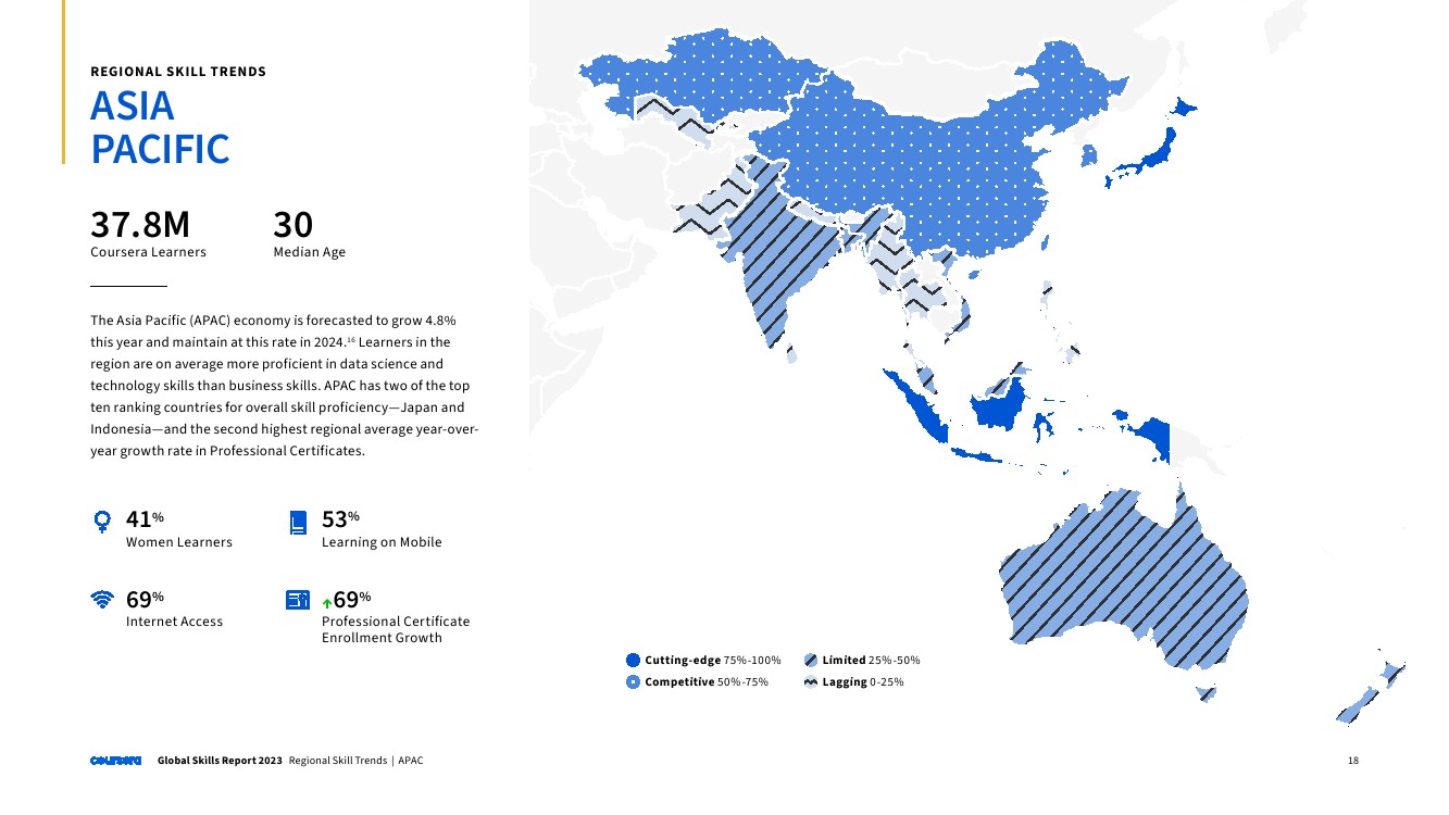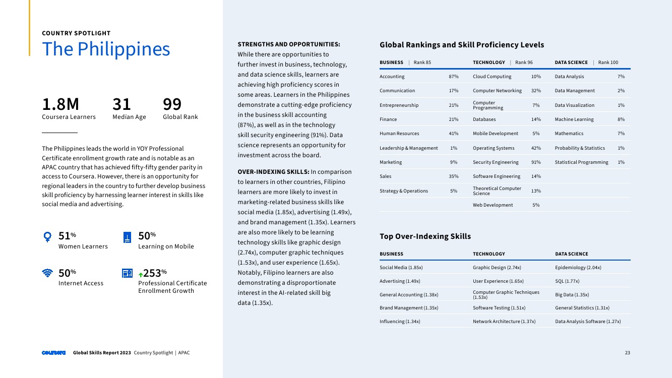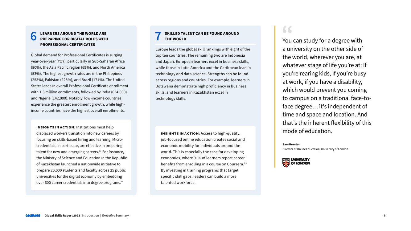 全球对专业证书的需求正逐年飙升,尤其是在撒哈拉以南非洲(80%)、亚太地区(69%)和北美(53%)。增长率最高的是菲律宾(253%)、巴基斯坦(228%)和巴西(171%)。