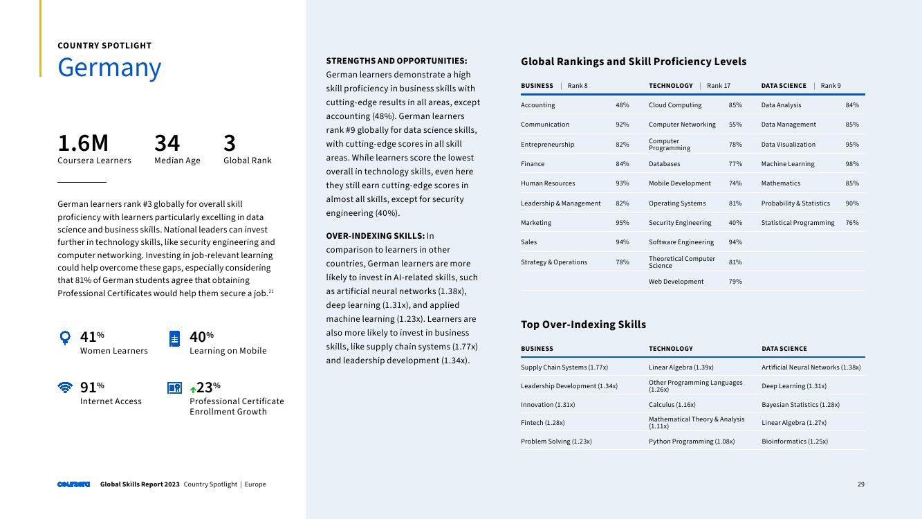 Coursea发布了“2023年全球技能报告”。调查数据来自100个国家的1.24亿注册学习者。报告专注于三个最受欢迎的领域:商业、技术和数据科学。