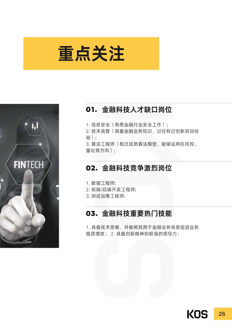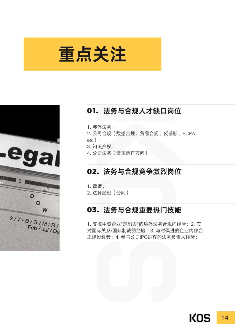 从行业维度看,人才缺口岗位包括工业制造自动化和数智化领域 的专家,金融领域的硬科技投资人等,金融科技领域的信息安全 人才、算法工程师等,消费零售领域的CRM人才等,新能源领 域除销售以外人才,地产领域新一线及二线城市招商人才,以及 各行业数字化转型人才。而职能岗方面,拥有行业强相关经验的 人才更受欢迎。比如,有互联网、硬科技、金融与金融科技等行 业相关经验的法务合规人才,有行业强相关的业务财务体系搭建 能力的财务人才,有智能制造、新能源等行业相关行业经验的人 力资源人才等。