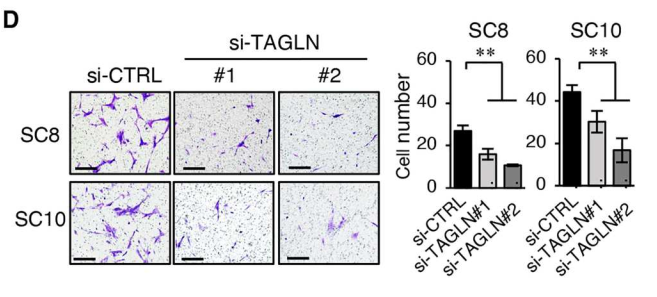 这个TAGLN是钙调蛋白家族成员之一,是一种肌动蛋白交联蛋白,是肌成纤维细胞的标记物,它的存在赋予了细胞收缩的能力。