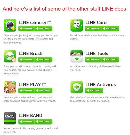 Google Play和App Store上与Line绑定的应用有50多款,这些应用的下载量已达2.9亿次。