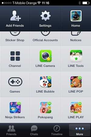 看下面Line提供的Line家族的应用,在重要位置的展示很好地带动了Line其他APP的发展。这就是所谓的家族集团作战模式,相互导流量,实现一个内部循环的体系,将用户的时间牢牢控制在公司的应用内。