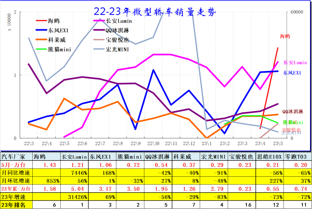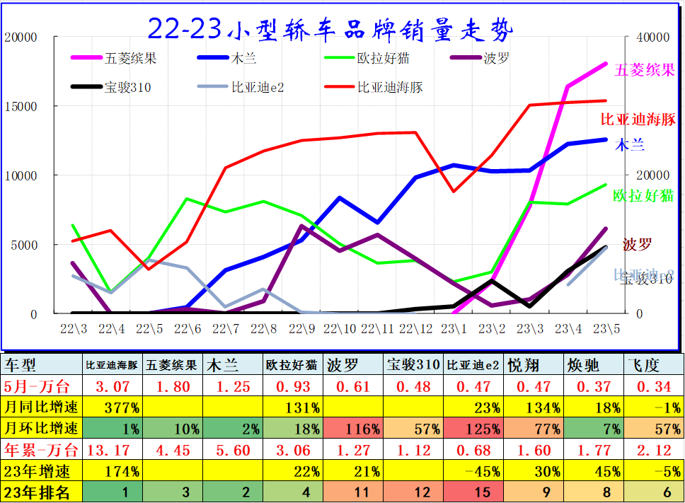 5月A0级轿车是自主电动车主导,比亚迪、上汽乘用车的电动车较强。目前上汽乘用车的木兰表现较好。
