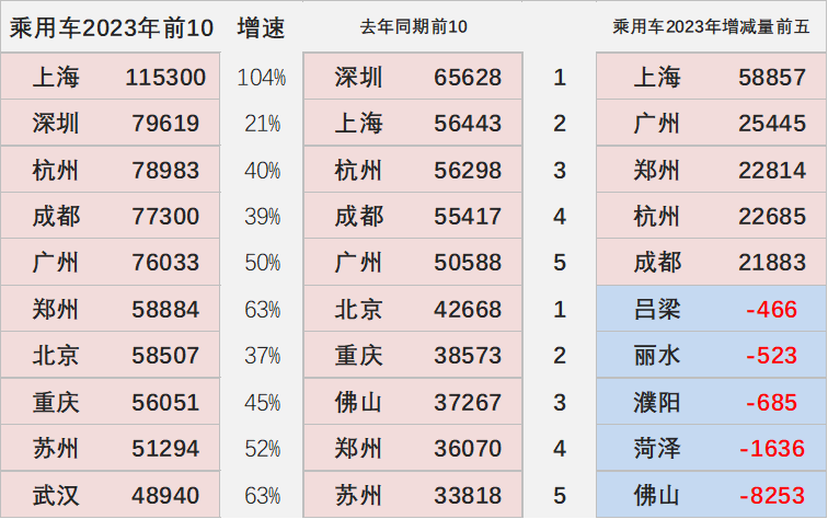 2023年新能源车相对于2022年同期仍是大幅增长,上海、成都、杭州、广州、郑州等增长都相对较为迅猛,形成增量的核心推动力量。