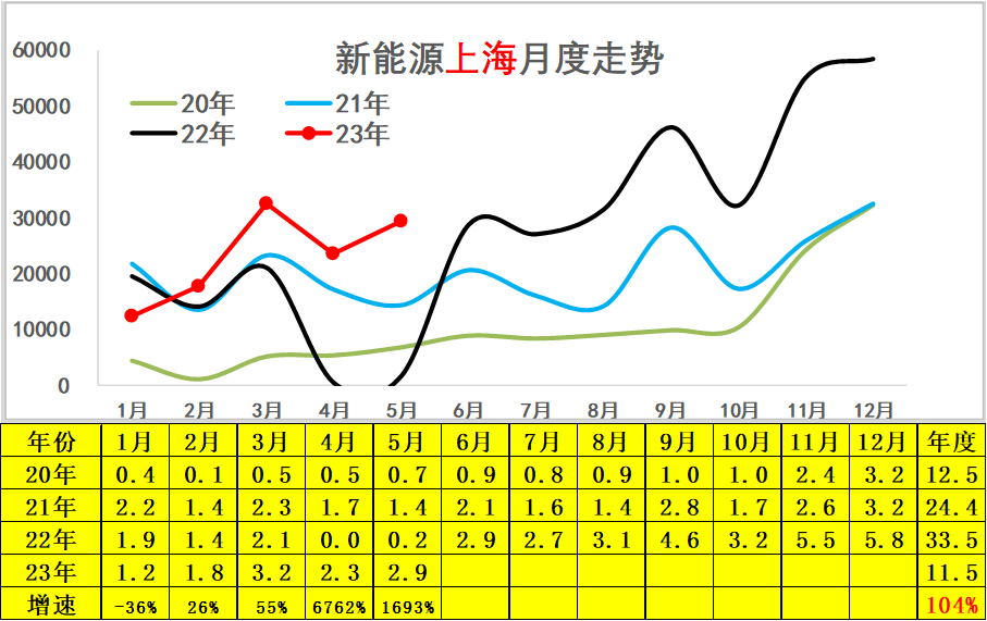 2023年5月份上海的新能源车市场销量达到2.9万台,相对去年5月的0.2万提升1693%,去年的上海新能源车遭遇疫情的损失目前已经明显恢复,抢牌照行情结束的影响不大。