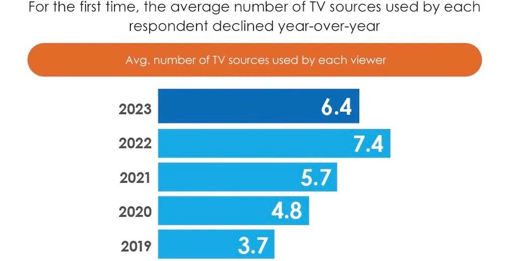 Hub的年度Best Bundle调查显示,2023年,观众称他们所使用的视频资源数量首次同比下降,分析师表示这并不奇怪,对于那些从消费者越来越多的视频订阅中获益的视频提供商来说,目前黄金时代已经结束了。