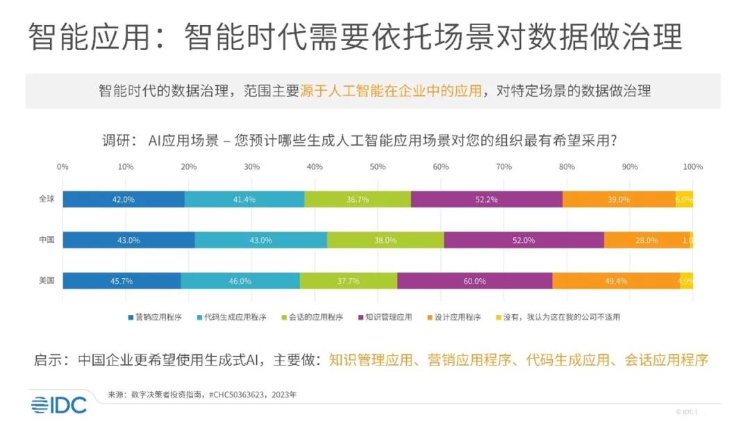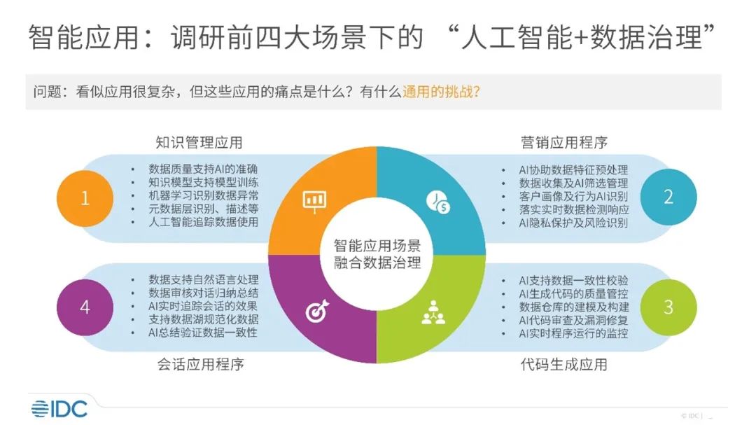 AI时代下的数据治理将迎来新的挑战,无论是定义范畴、治理范围、侧重点、应用安全等都会是新的课题。基于上述4个智能应用场景,数字决策者可通过场景的主要应用,探究AI对数据治理工作的改变。
