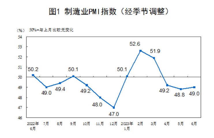 6月份,制造业采购经理指数(PMI)为49.0%,比上月上升0.2个百分点,制造业景气水平有所改善。